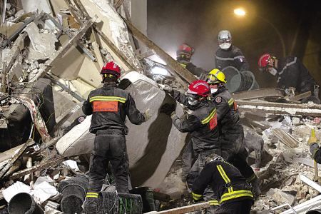 | 消防人员在事故现场展开救援。(新华社/法新) |