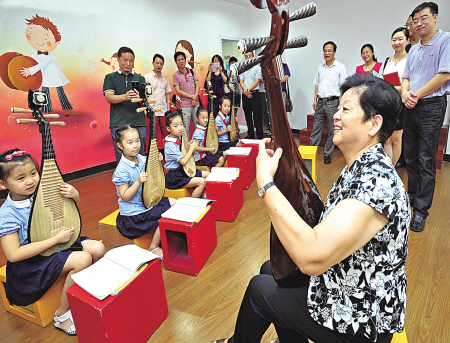 昨天上午,刚刚被宁波艺术实验学校聘请为校艺术顾问团总顾问的国家一级演奏员傅丹正在该校向一二年级的小琴手示范琵琶曲《老六板》的演奏。开学第一天,来自我市音乐、舞蹈、书法、美术、戏曲等领域的10位知名艺术家欣然接受邀请,义务担任该校艺术顾问,共同为培育艺术苗子出力。