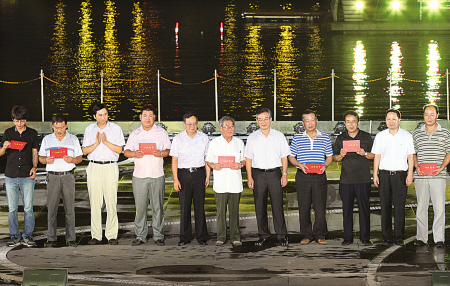 本市道德模范、最美宁波人、志愿者、帮扶对象等群体的代表上台获得首批文化卡。 (周建平 摄) |