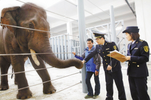 近日,在宁波雅戈尔动物园指定隔离场,鄞州检验检疫局顺利完成4头进境亚洲象的进境检疫工作。待天气转暖后,宁波市民将有幸看到这4头亚洲象的身影。据介绍,这是我市动物园首次引进亚洲象。此次进境的亚洲象为两头公象和两头母象,来自东南亚,平均年龄为20岁左右。其中2头公象身高约为2.7米,体长约5.5米,体重大概在2.8吨到3吨左右。