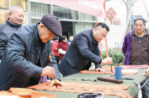 近日,江北庄桥街道天沁社区举办了迎新年活动,活动邀请了辖区内书画社的热心居民现场写春联赠春联。