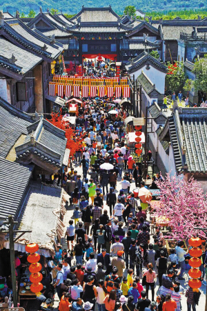 | 襄阳城内游客熙熙攘攘。 |