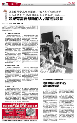 冯宪军的妹妹登记成为器官捐献志愿者