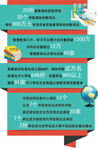 □李宁 浙大宁波“五位一体”校区、“牵手”世界顶级名校麻省理工学院、开创国内中职教育境外办学的先河、20所基教课改实验学校、宁波民办学校有了事业单位“身份”、启动乡村教师支持计划……回顾刚刚过去的2016年,宁波教育向着民生关切的热点持续发力,同时也在国际舞台上不断发出自己的“声音”,走出了一条以立德树人为根本任务、以促进公平为基本要求,坚持改革创新和国际化发展的现代化教育之路。 ◆高等教育探索名城名校合作 推进高水平大学建设和特色学院建设。宁波市政府与世界名校美国麻省理工学院合作成立宁波(中国)供应链创新学院,启动硕士研究生项目和高管培训项目;宁波市政府与浙江大学合作共建浙大宁波“五位一体”校区;深化宁波市与中国社会科学院战略合作,筹建“宁波市经济社会发展战略研究院”;认定7个市级首批试点特色学院,将特色学院建成学校改革创新的示范窗口。 ◆教育国际开放形成“宁波样本” 进一步深化部市共建教育国际合作与交流综合改革试验区建设,举办与中东欧国家、法国、英国、新西兰、韩国以及港澳台等国家和地区的教育交流会和首届职业教育开放国际论坛,签订各类合作协议68项;打造中国-中东欧国家教育展、“一带一路”沿线国家商学院对话机制,启动宁波中东欧国家研究院建设;宁波外事学校、宁波三中被评为国家级中德塑造未来示范项目学校。 国家现代职教开放示范区建设取得新突破。宁波外事学校罗马尼亚分校成立,联合培养国际化中等艺术人才,开创了中国中职教育境外办学的先河。宁波职业技术学院牵头成立了“一带一路”产教协同联盟,与贝宁CERCO学院在贝宁合作成立中非(贝宁)职业技术教育学院,开创了浙江省高职院校海外办学的先河。 ◆打造职教产教协同“航母” 进一步推进国家职业教育与产业协同创新试验区建设,宁波市职教中心学校与英国诺丁汉中央学院签订合作协议,在汽车专业引入IMI(英国汽车工业学会)的教学与认证体系。市级协同创新中心增至12个,确定首批校企合作优秀企业基地20家,完成改造提升专业实训室109个;浙江工商职业技术学院等7个单位成为省级现代学徒制试点单位;在全国职业学校技能大赛上,宁波代表团共获46个一等奖、49个二等奖、19个三等奖,连续第四年取得全国金牌总数第二的佳绩;古林职高、宁波技师学院成为世界技能大赛中国国家队集训基地,古林职高学生阎晗在第44届世界技能大赛全国选拔赛中以第一名成绩入选国家集训队;启动实施职业教育“工匠精神”培育提升工程;宁波市学生职业体验拓展中心启用,成为全国首家综合性的学生职业体验拓展基地。 ◆民间资本办学有新进展 贯彻落实市政府《关于进一步鼓励民间资本进入教育领域的实施意见》,制发《宁波市非营利性民办学校开展事业单位登记管理暂行办法》,宁波荣安实验中学成为首家试点民办学校;原宁波万里国际学校(高中部)向宁波诺丁汉大学附属中学平稳过渡。 ◆全国首个“教育淘宝”上线 全国首个教育淘宝“甬上云淘”上线,入驻机构达27家;宁波智慧教育门户、学习平台累计访问量突破1200万,日均点击量超过12万,历史最高日访问量32万以上,智慧教育试点单位学校达到48家。移动客户端、智慧教育网络直播讲座吸引20万人次观看,打破时空界限,拓展优质教育资源。 ◆启动乡村教师支持计划 进一步推进教师队伍建设,发布《宁波市乡村教师支持计划(2016-2020年)实施办法》,从师德建设、人员配置、待遇保障、职称评审和培养培训等5个方面对乡村教师队伍建设予以支持;深入推进义务教育学校教师校长交流工作,全年参加跨区域交流教师校长1413名;启动首届宁波市中小学名班主任评选工作。 ◆基教课改创新育人模式 与教育部基础教育课程教材发展中心合作建立基础教育课程改革实验示范区,认定20所实验学校;设立35个市级课改创新项目,鼓励普高与职高、高校合作开设选修课;设立每年600万元特色高中建设三年行动计划专项奖励资金,实施普通高中特色创新项目。 ◆创业创新教育结硕果 实施“宁波市科技新苗培养计划”,开展首届中小学生创客大赛,举办首届“大红鹰杯”大学生创业大赛。宁波教育科技产业园开园,通过行政引导、企业主导、学校参与和基金助推,打造全国首个教育科技产业研发基地,搭建教育科技研发、课程资源推台、校企合作对接、学生创业孵化等七个平台,为本地大学生创业提供孵化扶持;市教育局受邀出席中美教育智库对话作“创业创新教育的宁波实践”演讲。在全国职业学校创新创效创业大赛上,宁波代表队获创业项目特等奖、创新项目一等奖。在2016年世界头脑奥林匹克大赛上,李惠利小学获得小学组冠军,龙赛中学获高中组冠军。2016年DI全球思维创新大赛,世南小学7名学生组成余姚市青少年宫代表队,获小学E组特等奖。 ◆标准化学校达646所 完成新(改、扩)建省定标准化幼儿园80所,增加学额近万名;等级幼儿园达1145所;乡镇中心幼儿园标准化率达100%;全市共有标准化中小学校646所,创建率达98%以上;建成91家中小学生社会实践大课堂市级资源基地。