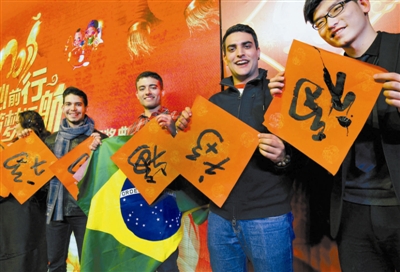 近日,鄞州首南街道学府社区的“地球村国际志愿者”在科技孵化园举办喜迎中国年活动。国际志愿者现场学习中国书法,并书写“福”字,用中文向嘉宾致以新年祝福。丁安 练丹妮 摄