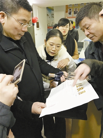 | 昨天的联合整治行动中,工作人员在检查培训机构的证件。记者 徐叶 摄 |