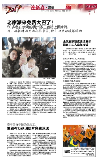 余姚有家饭店连续三年请环卫工人吃年夜饭