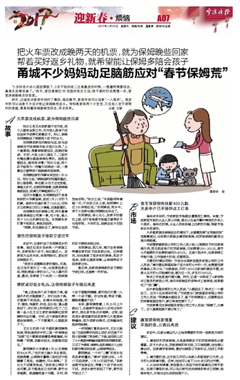 甬城不少妈妈动足脑筋应对“春节保姆荒”