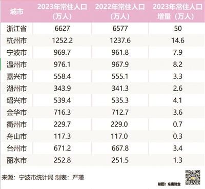 3月5日,宁波市统计局发布2023年宁波市人口主要数据公报。截至2023年末,全市常住人口969.7万人,与2022年末常住人口961.8万人相比,增加7.9万人。 宁波哪个城区对人口最具吸引力?哪个城区人口增速最快?新增的7.9万人,都去了哪些城区?人口规模是评判城市能级的重要指标之一。在国内,每年都有上亿人口选择踏上打拼之路,然后择一城安居乐业。 如今,宁波人口达到969.7万人,即将奔赴千万人口之城。宁波如何冲刺? 1 鄞州区流入人口最多 记者整理发现,2023年,宁波所有区(县、市)均实现常住人口正增长。“人随产业走”,常住人口数量的增长,从侧面反映宁波各个区域的产业吸引力。 其中,宁波常住人口增量的“桂冠”花落鄞州区。去年宁波新增的7.9万常住人口中,有2.8万人“pick”鄞州,占比高达35.4%。鄞州区国家级制造业“单项冠军”数量居全市第一,总部经济规模不断攀高,凭借制造业与服务业双轮驱动,吸引各类人才安身立命。 值得一提的是,鄞州也是宁波市区内大学生最集中的地区。根据2020年第七次人口普查数据,彼时宁波拥有大专及以上学历的人群达168万人,而鄞州独占46万人,较其他区(县、市)“遥遥领先”。 紧随其后的是北仑区,2023年新增常住人口1.5万。背靠“世界第一大港”,北仑区拥有雄厚的制造业基础和外贸优势,更有申洲国际、海天精工、拓普集团等上市公司,容纳大量就业人口。 北仑也是宁波最受年轻人青睐的区域之一。根据2020年第七次人口普查数据,北仑区18-35周岁青年占常住人口的比重达31.54%,居全市首位。今年年初,北仑出台《关于深化打造“青年北仑”的若干意见》,为年轻人才提供青年公寓等住房保障支持。 而江北区、慈溪市、海曙区、镇海区去年分别新增常住人口1万人、0.7万人、0.7万人、0.6万人。慈溪仍为宁波常住人口规模最大的县域;江北虽为人口规模最小的“后起之秀”,常住人口新增规模却位居全市第三,表现出良好的潜力。 奉化区去年常住人口增量为0.3万人,为“南三县”之首;余姚市、宁海县、象山县的这一数据则为0.1万人。这些区域新兴产业发展有待强化,为吸引更多人口注入动能。 2 宁波如何抓住“人才第一资源”? 人口是经济社会发展基础,人才更是“第一资源”。今年“新春第一会”,宁波发出“依靠人才创新业,充分激发‘三支队伍’拼搏动力、无限活力”的动员令,并公布了政治领航铸魂、多维立体赋能、战略人才引育等10大专项行动,充分体现了宁波对于人才这一“第一资源”的重视与关切。 当前,谁拥有一流的创新人才,谁就拥有了科技创新的优势和主导权。集聚天下英才,宁波还能做些什么? 宁波东海经济研究院副院长管如镜表示,目前,国内各区域吸引人才的方式,可大致分为四种类型:第一是产业链导向,如长三角地区;第二是创新导向,如粤港澳地区;第三是区域中心城市导向,如成渝地区;第四是相对特殊的“首都优势”导向,即京津冀区域。 但从根本来看,无论何种模式,想要做到人才“育得出”“引得进”“用得好”“留得住”,都得从人才发展的需求出发。 对此,管如镜建议:一是提供广阔事业空间,宁波要做好产业升级文章,尤其突出战略性新兴产业和未来产业等新质生产力的布局,加快高水平大院大所和创新型企业的培育发展;二是做实人才培育体系,宁波要依托各类主体,加快创新人才、技能人才、青年人才等各类人才的培育机制创新,让人才有切实获得;三是强化公共“软基建”服务,宁波要在高端化、国际化、均等化方面补足短板,适应多元化、多层次人才的需求。记者 王婧 严瑾
