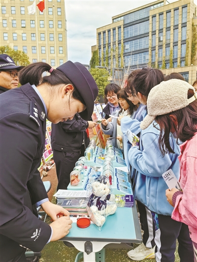 本报讯(现代金报|甬派 记者 王伟 通讯员 周丽娟 何嘉莹)校园安全教育以“超市”的形式呈现?对!3月22日中午,宁波市李惠利中学的操场上,一场“校园安全教育超市”活动如约开启。交警、消防、卫生、市场监管等多个部门分别开展反诈禁毒、交通安全、消防安全等方面的安全教育,同学们可以选择感兴趣的,也可以全部参与。 记者在现场看到,各个区域都排起了队伍,同学们参与互动的积极性很高。在交通安全守规区,工作人员教同学们如何规范佩戴安全头盔。在法条互动区,宁波市检察院的工作人员准备了很多题卡,同学们需要从《宪法》《刑法》《国家安全法》三部法律中找到对应的法律条文,最先完成任务的同学可选取毛巾等礼品。 高二的吴同学体验了消防剪扩钳的使用,她告诉记者,钳子很重,要拿着它夹住一个乒乓球并不容易。通过活动,她知道了剪扩钳是破拆工具,在狭小空间进行抢险救援时能发挥巨大作用,之所以用它做夹乒乓球的训练,是为了破拆时能更好地把握力度,在不伤害被困人员的情况下实现破拆。“要向消防人员致敬,他们的工作很伟大。”体验过后,同学们说。 高一的胡同学、颜同学一起体验了心肺复苏、找法律条文、戴头盔、卷水带等项目。“今天活动很有趣,与一般的安全教育就是听老师讲课不同,今天的所有项目互动性都很强。”胡同学在活动中收获了一根跳绳,开心地说。 宁波市教育局校园安全管理处相关负责人告诉记者,3月25日“全国安全教育日”前后,各地各校都会举行安全教育相关活动,李惠利中学联合属地相关部门推出的“安全教育超市活动”,互动性和体验性很强,学生参与度高,这种形式值得推荐。
