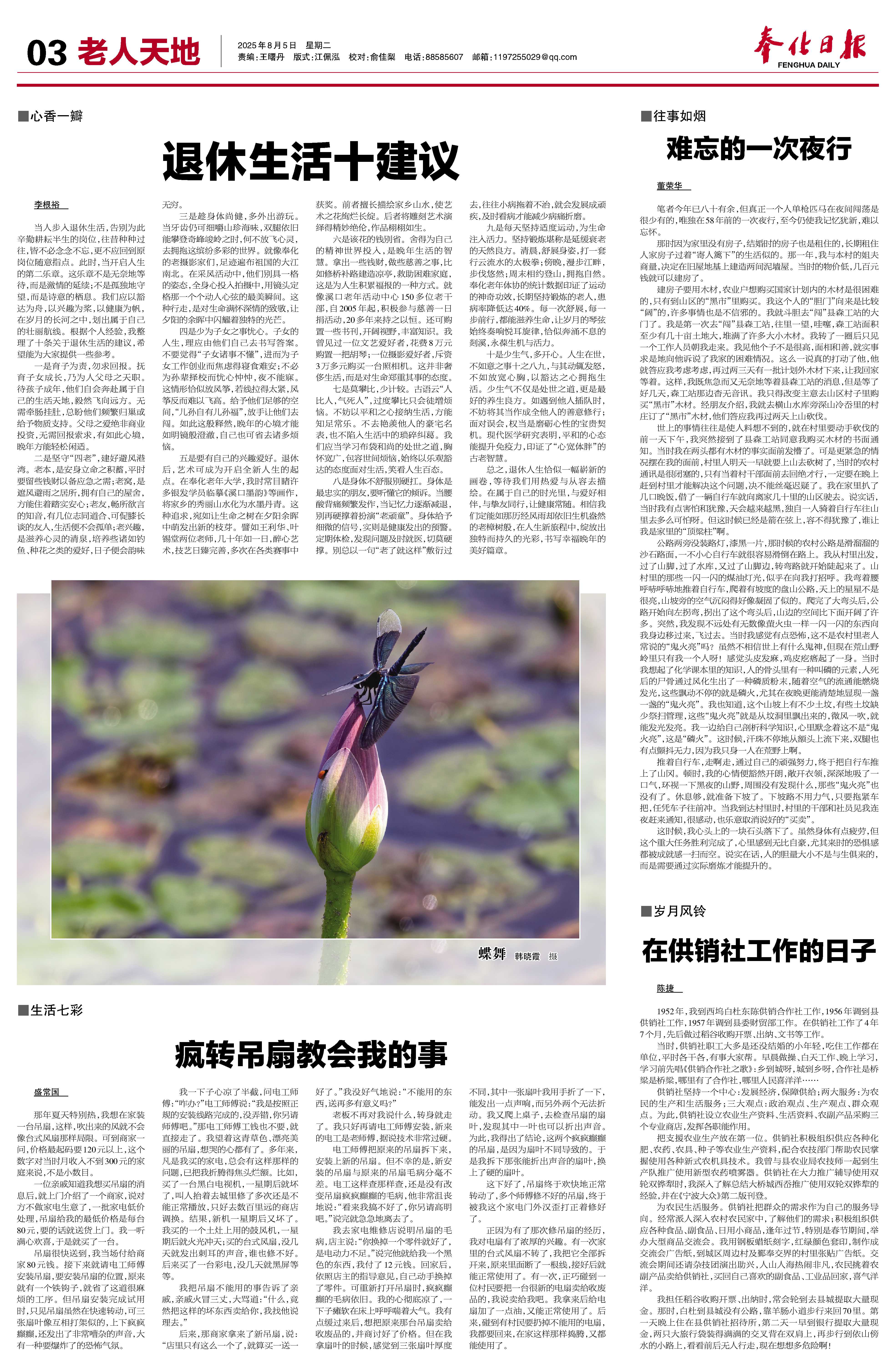 六是该花的钱别省。舍得为自己的精神世界投入,是晚年生活的智慧。拿出一些钱财,做些慈善之事,比如修桥补路建造凉亭,救助困难家庭,这是为人生积累福报的一种方式。就像溪口老年活动中心150多位老干部,自2005年起,积极参与慈善一日捐活动,20多年来持之以恒。还可购置一些书刊,开阔视野,丰富知识。我曾见过一位文艺爱好者,花费8万元购置一把胡琴;一位摄影爱好者,斥资3万多元购买一台照相机。这并非奢侈生活,而是对生命郑重其事的态度。