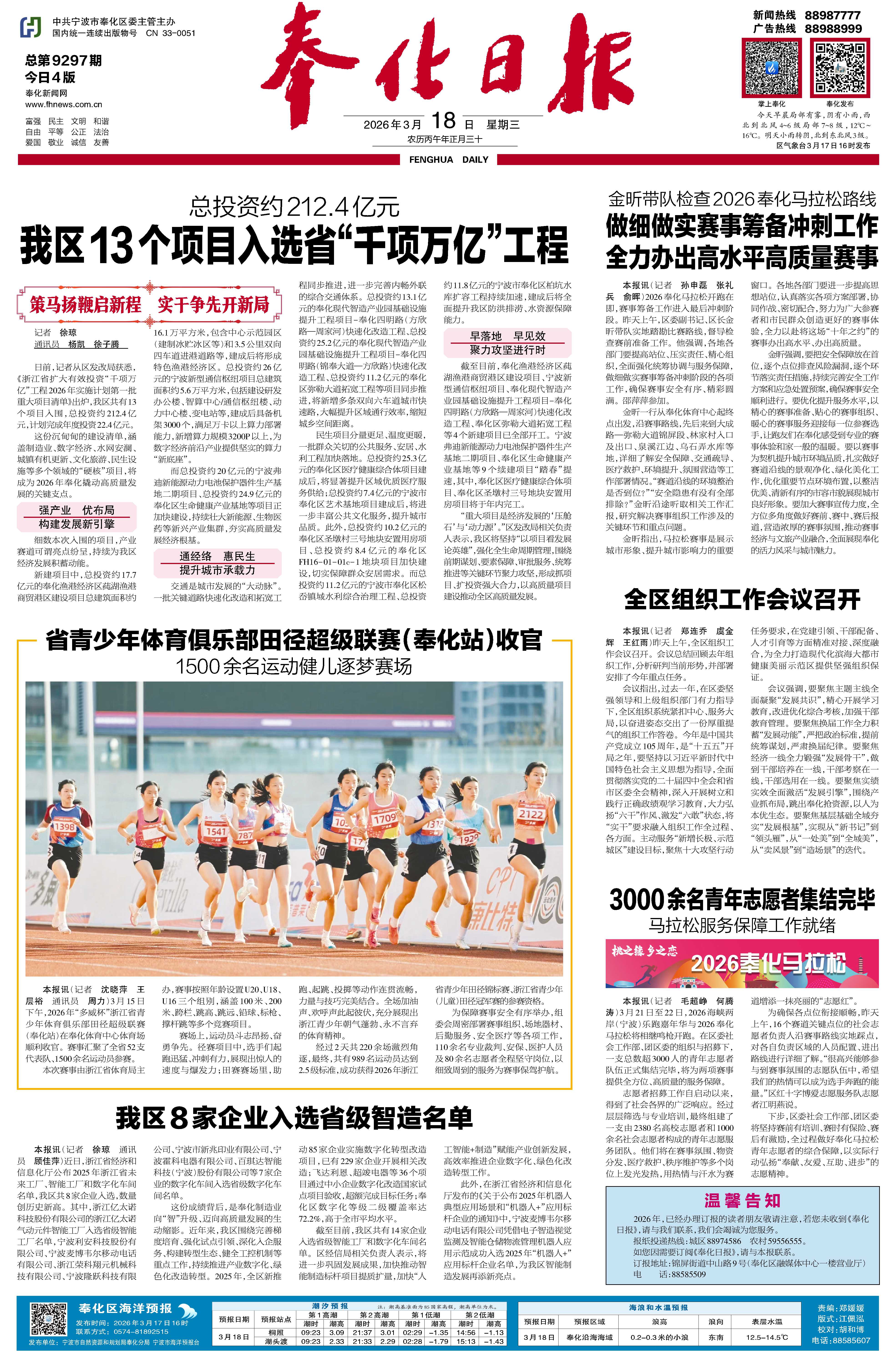 本报讯(记者 沈晓萍 王层裕 通讯员 周力)3月15日下午,2026年“多威杯”浙江省青少年体育俱乐部田径超级联赛(奉化站)在奉化体育中心体育场顺利收官。赛事汇聚了全省52支代表队、1500余名运动员参赛。