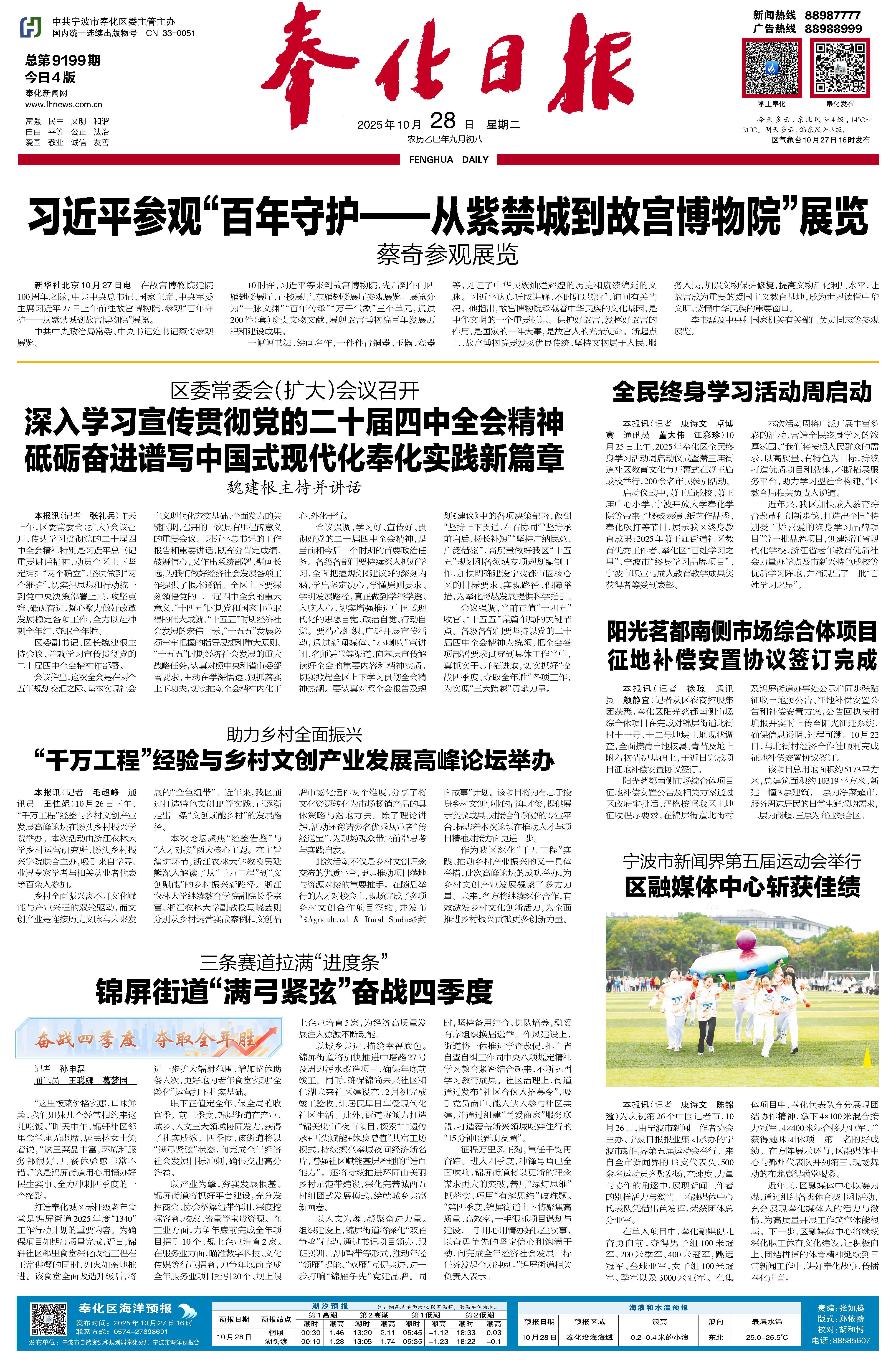 深入学习宣传贯彻党的二十届四中全会精神 砥砺奋进谱写中国式现代化奉化实践新篇章
