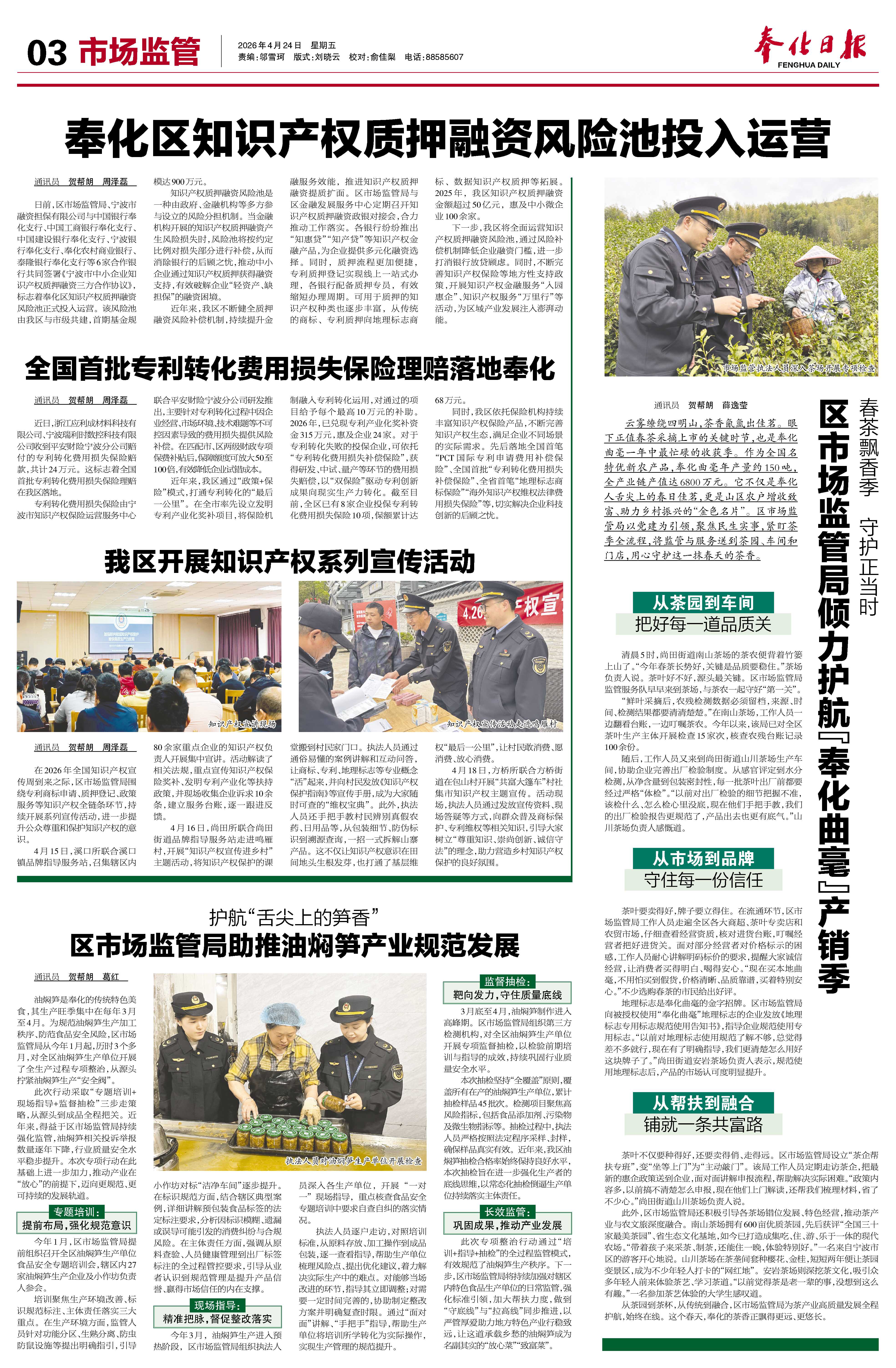 区市场监管局倾力护航“奉化曲毫”产销季