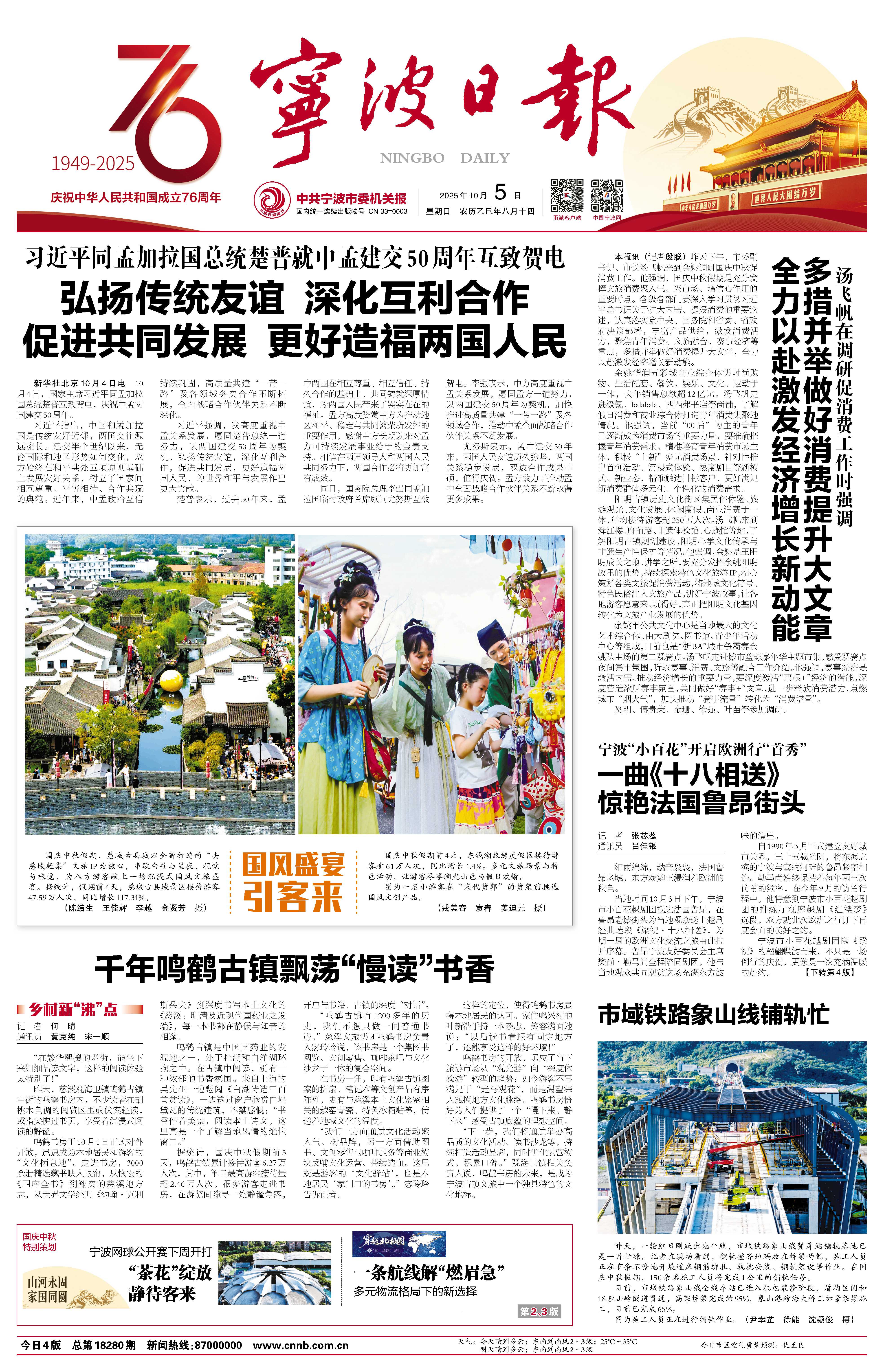 鸣鹤书房于10月1日正式对外开放,迅速成为本地居民和游客的“文化栖息地”。走进书房,3000余册精选藏书映入眼帘,从恢宏的《四库全书》到翔实的慈溪地方志,从世界文学经典《约翰·克利斯朵夫》到深度书写本土文化的《慈溪:明清及近现代国药业之发端》,每一本书都在静候与知音的相逢。