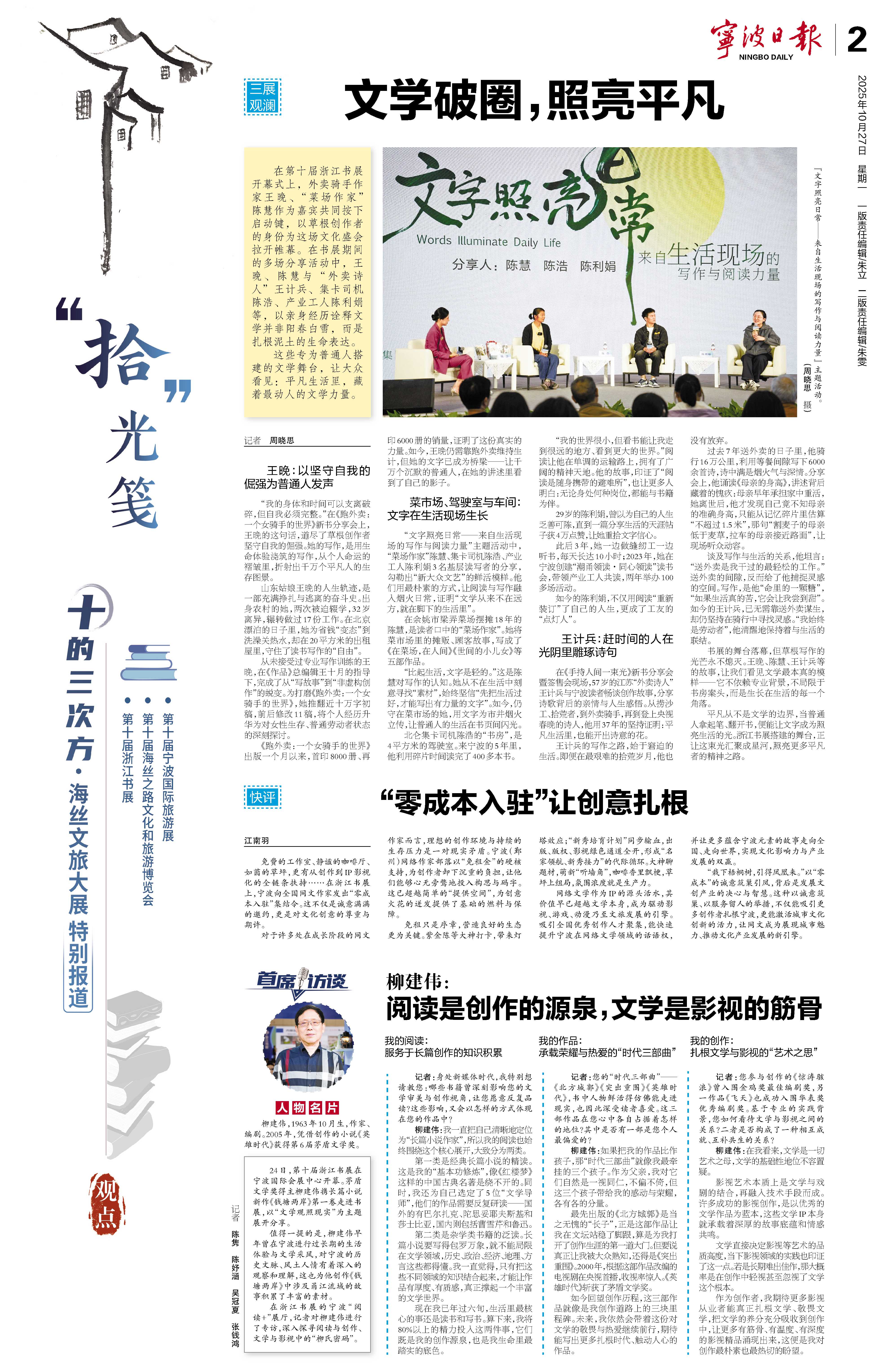 在浙江书展的宁波“阅读+”展厅,记者对柳建伟进行了专访,深入探寻阅读与创作、文学与影视中的“柳氏密码”。