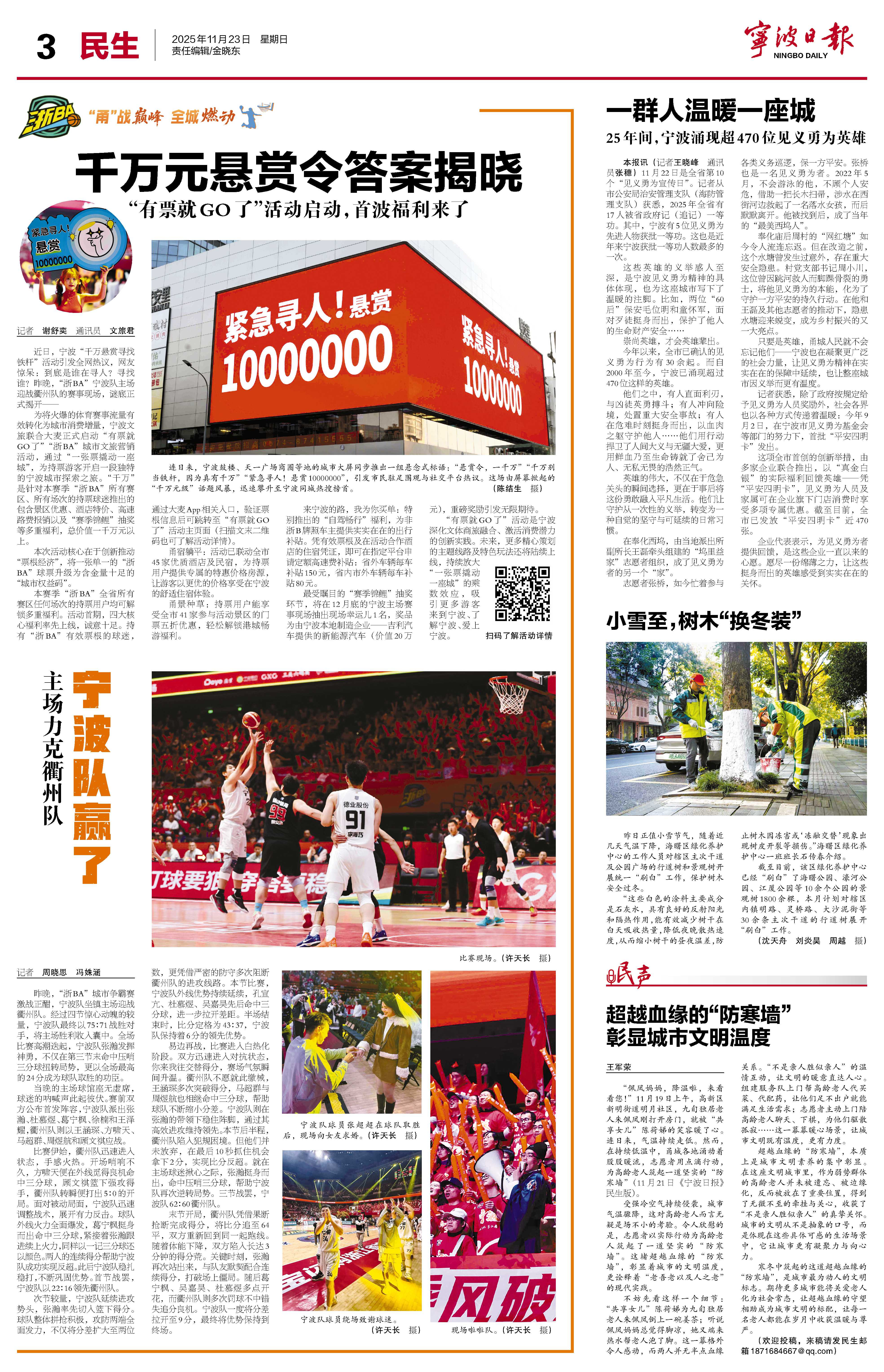 昨日正值小雪节气,随着近几天气温下降,海曙区绿化养护中心的工作人员对辖区主次干道及公园广场的行道树和景观树开展统一“刷白”工作,保护树木安全过冬。