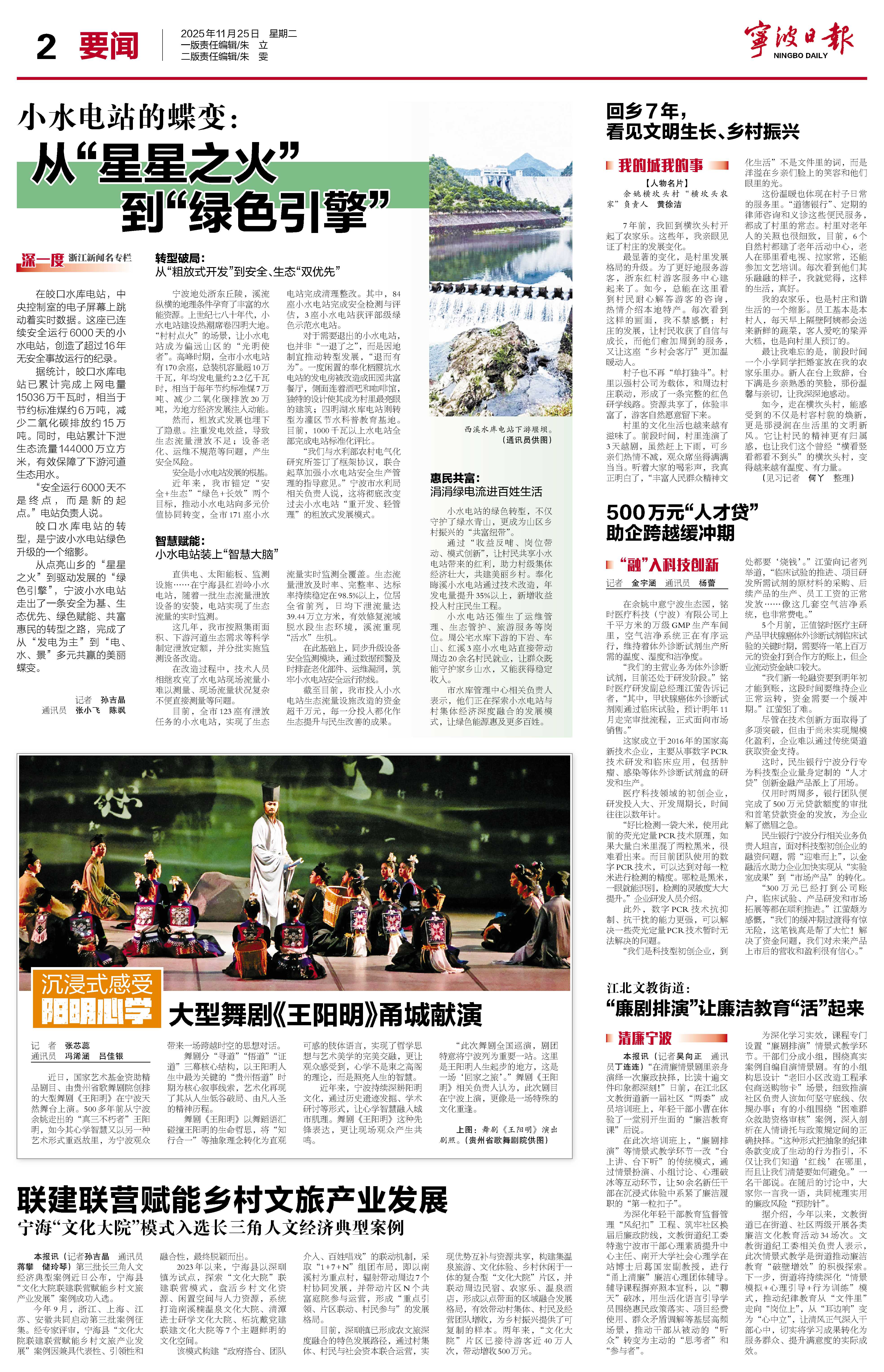 从点亮山乡的“星星之火”到驱动发展的“绿色引擎”,宁波小水电站走出了一条安全为基、生态优先、绿色赋能、共富惠民的转型之路,完成了从“发电为主”到“电、水、景”多元共赢的美丽蝶变。