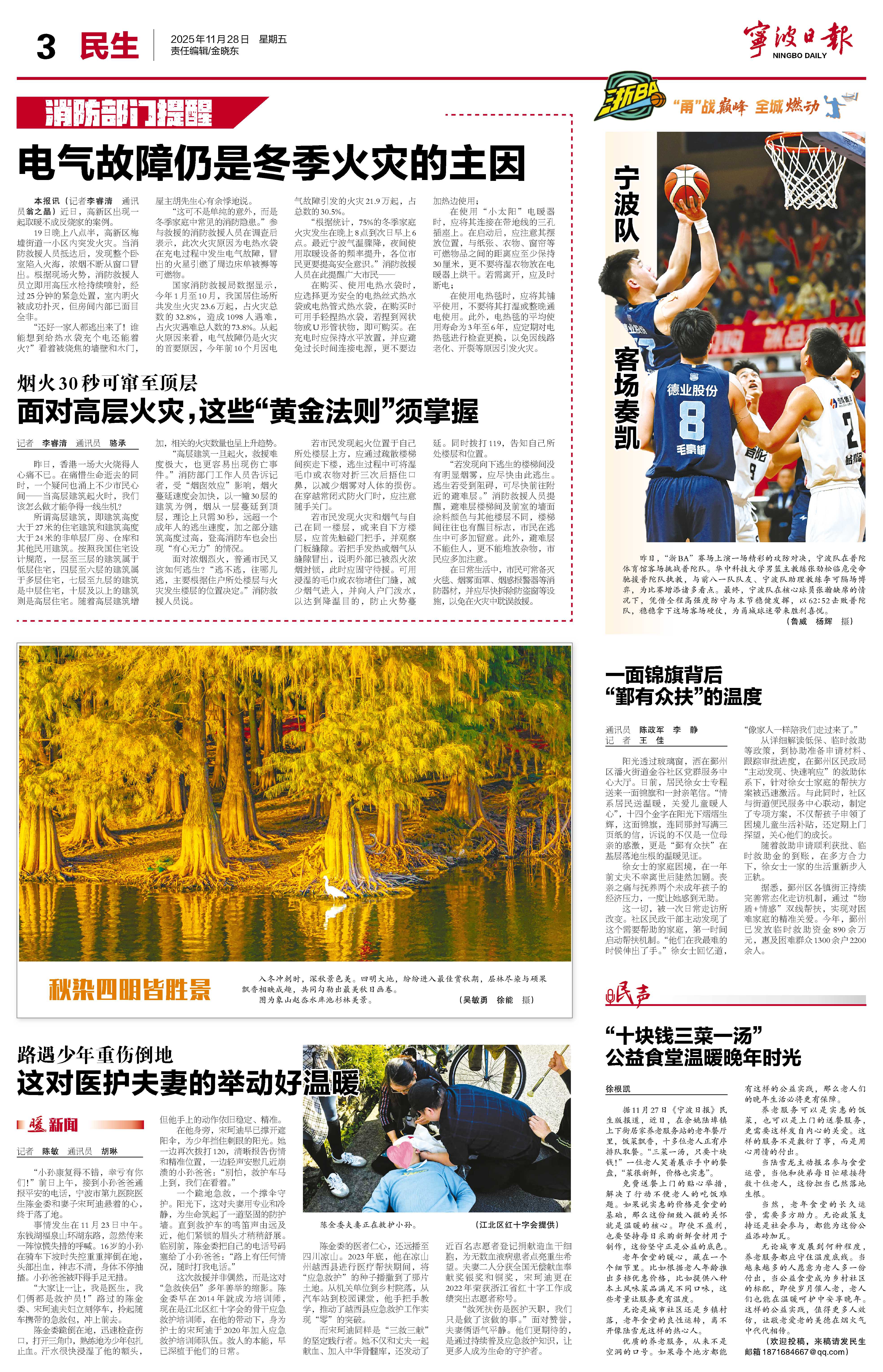 “根据统计,75%的冬季家庭火灾发生在晚上8点到次日早上6点。最近宁波气温骤降,夜间使用取暖设备的频率提升,各位市民更要提高安全意识。”消防救援人员在此提醒广大市民——