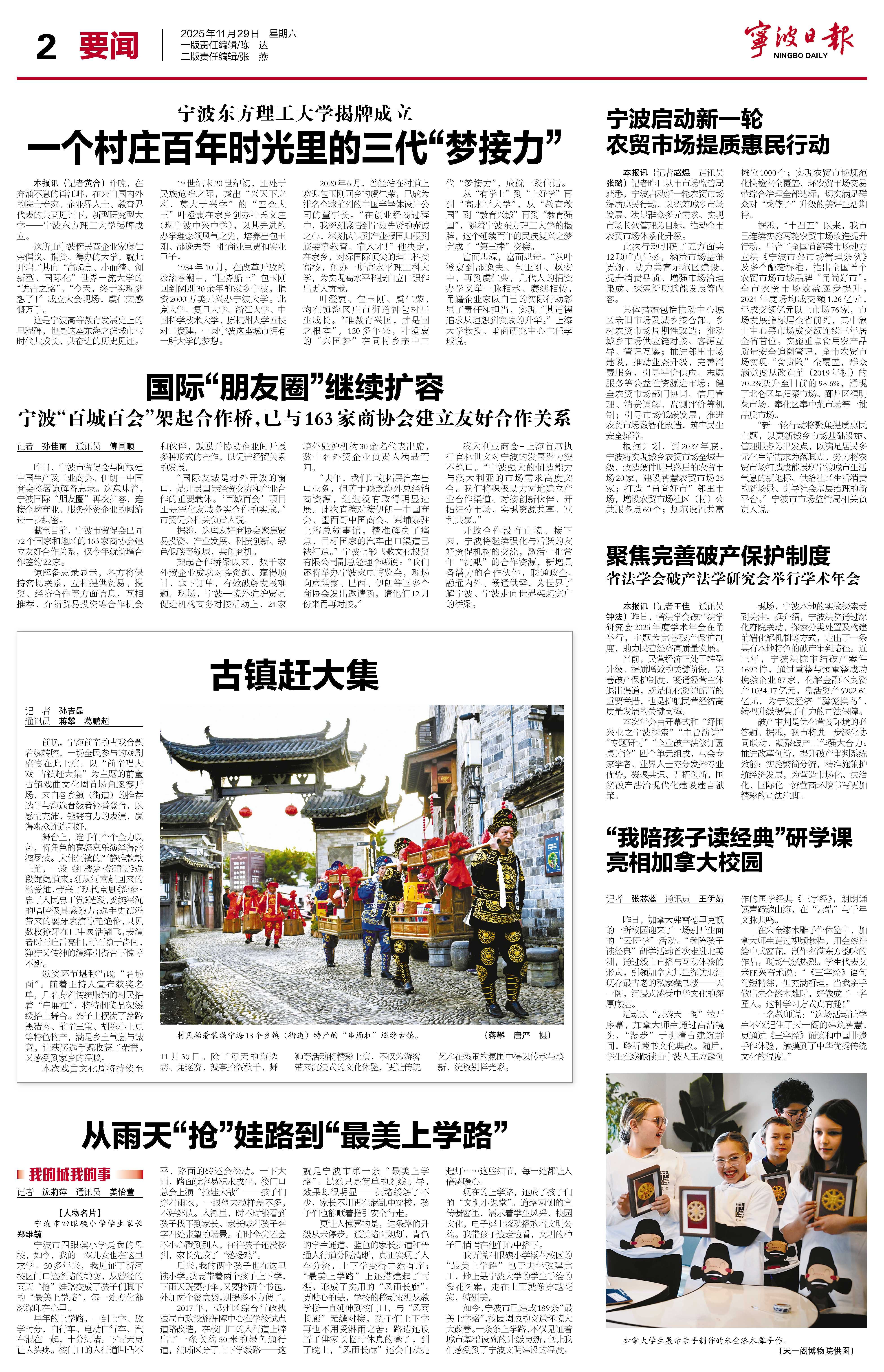 宁波市四眼碶小学是我的母校,如今,我的一双儿女也在这里求学。20多年来,我见证了新河校区门口这条路的蜕变,从曾经的雨天“抢”娃路变成了孩子们脚下的“最美上学路”,每一处变化都深深印在心里。
