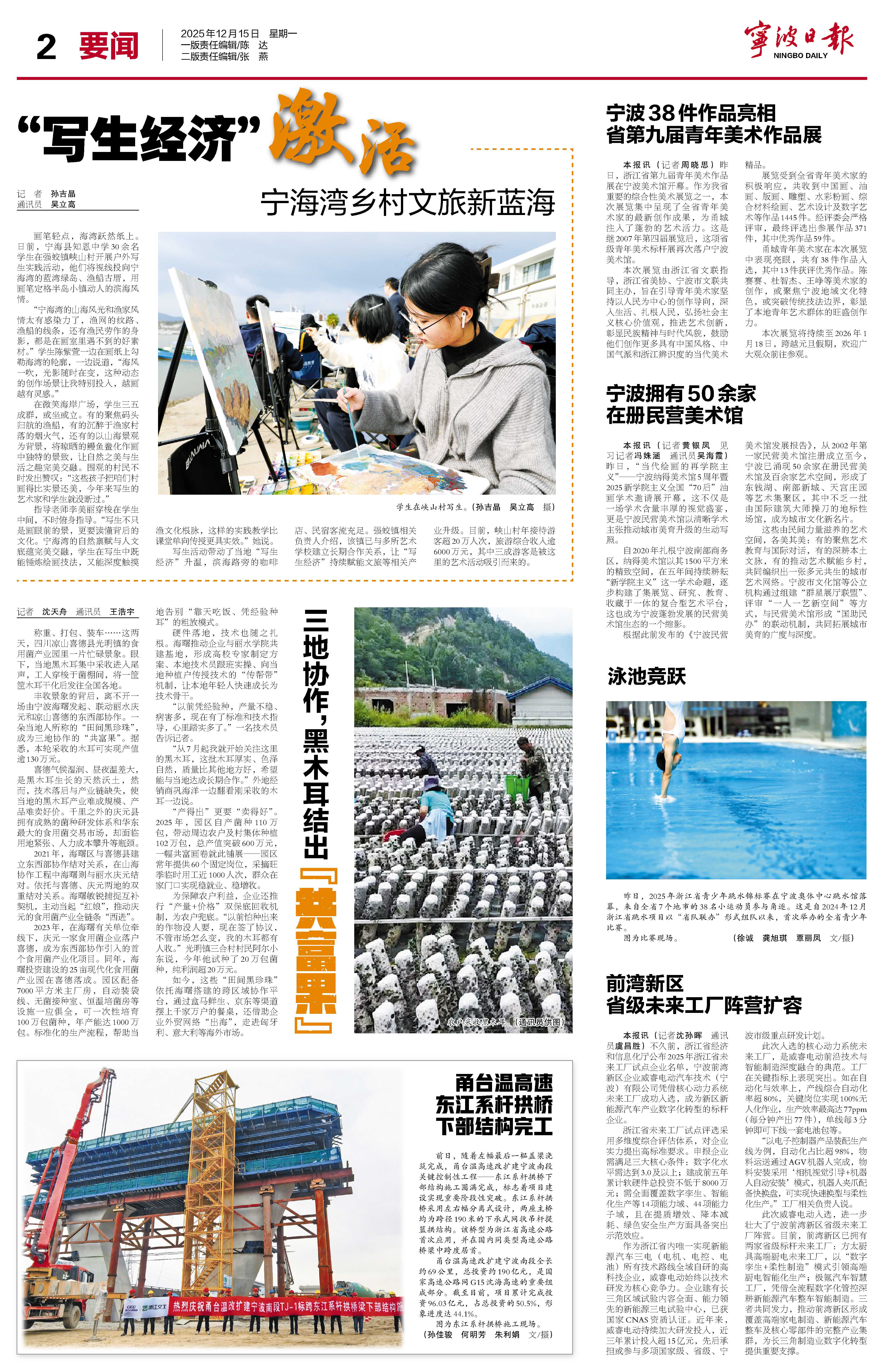 本报讯(记者周晓思)昨日,浙江省第九届青年美术作品展在宁波美术馆开幕。作为我省重要的综合性美术展览之一,本次展览集中呈现了全省青年美术家的最新创作成果,为甬城注入了蓬勃的艺术活力。这是继2007年第四届展览后,这项省级青年美术标杆展再次落户宁波美术馆。