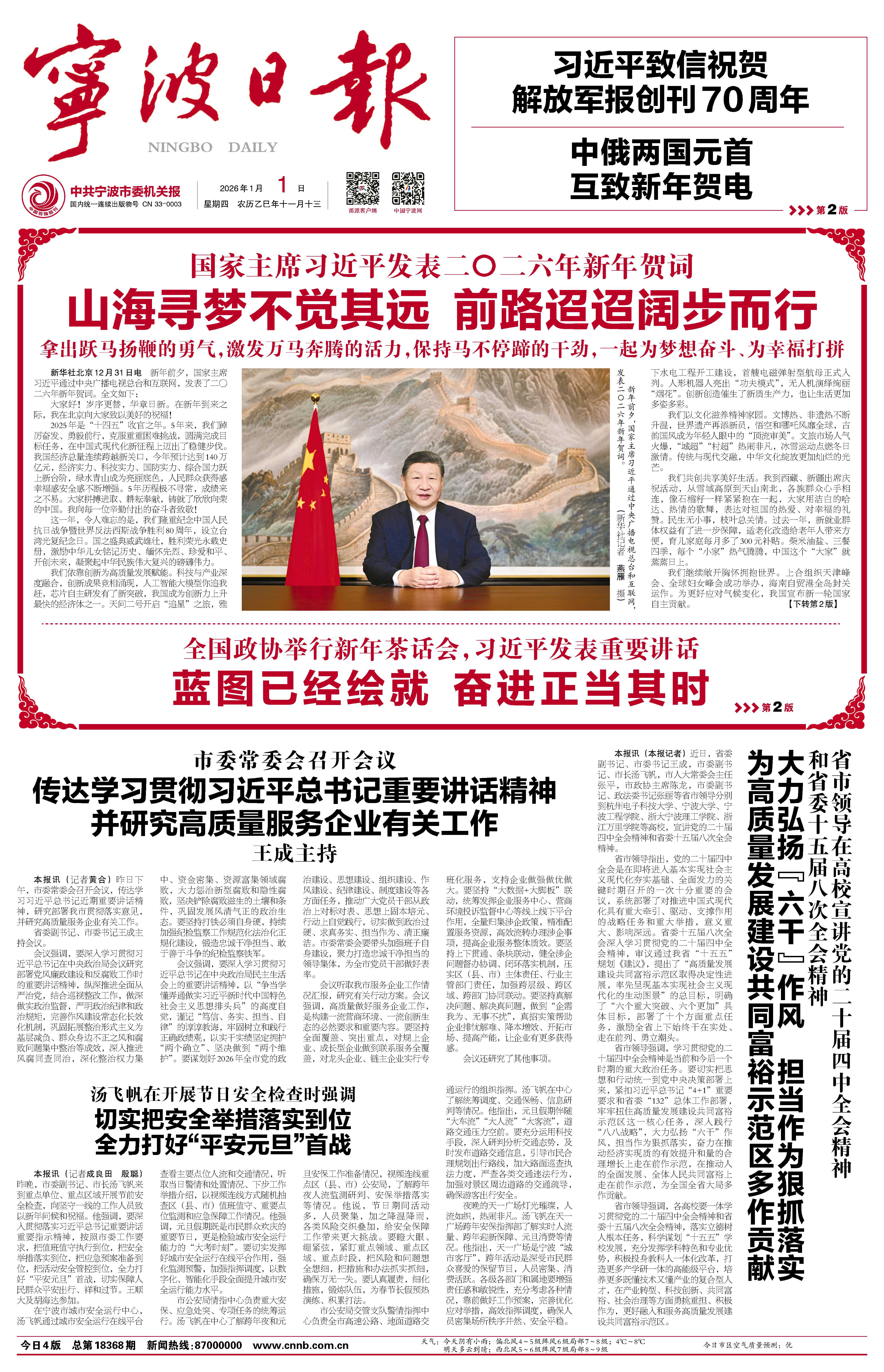 2026年是“十五五”开局之年。锐始者必图其终,成功者先计于始。我们要锚定目标任务,坚定信心、乘势而上,扎实推动高质量发展,进一步全面深化改革开放,推进全体人民共同富裕,续写中国奇迹新篇章。