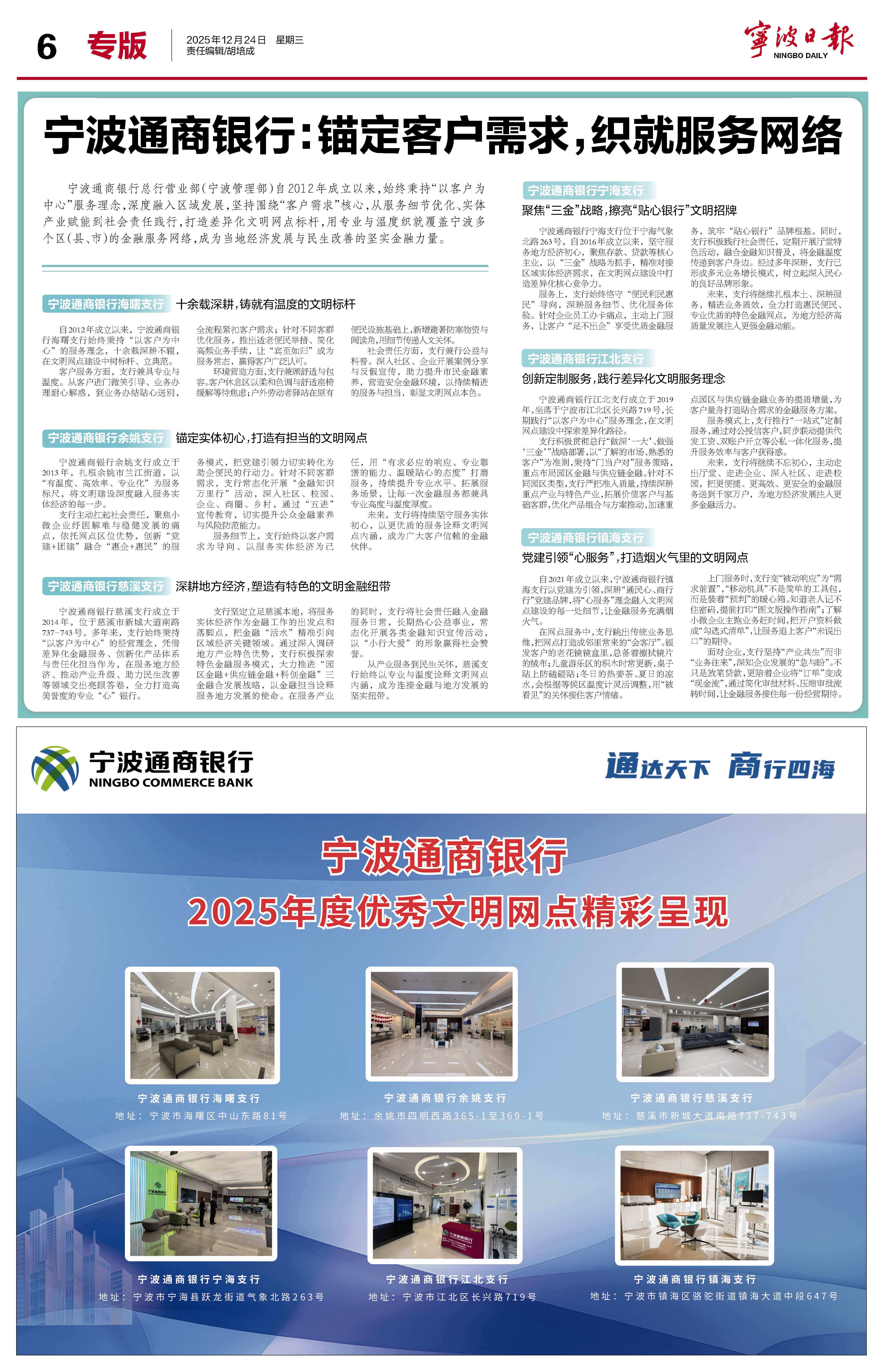宁波通商银行:锚定客户需求,织就服务网络