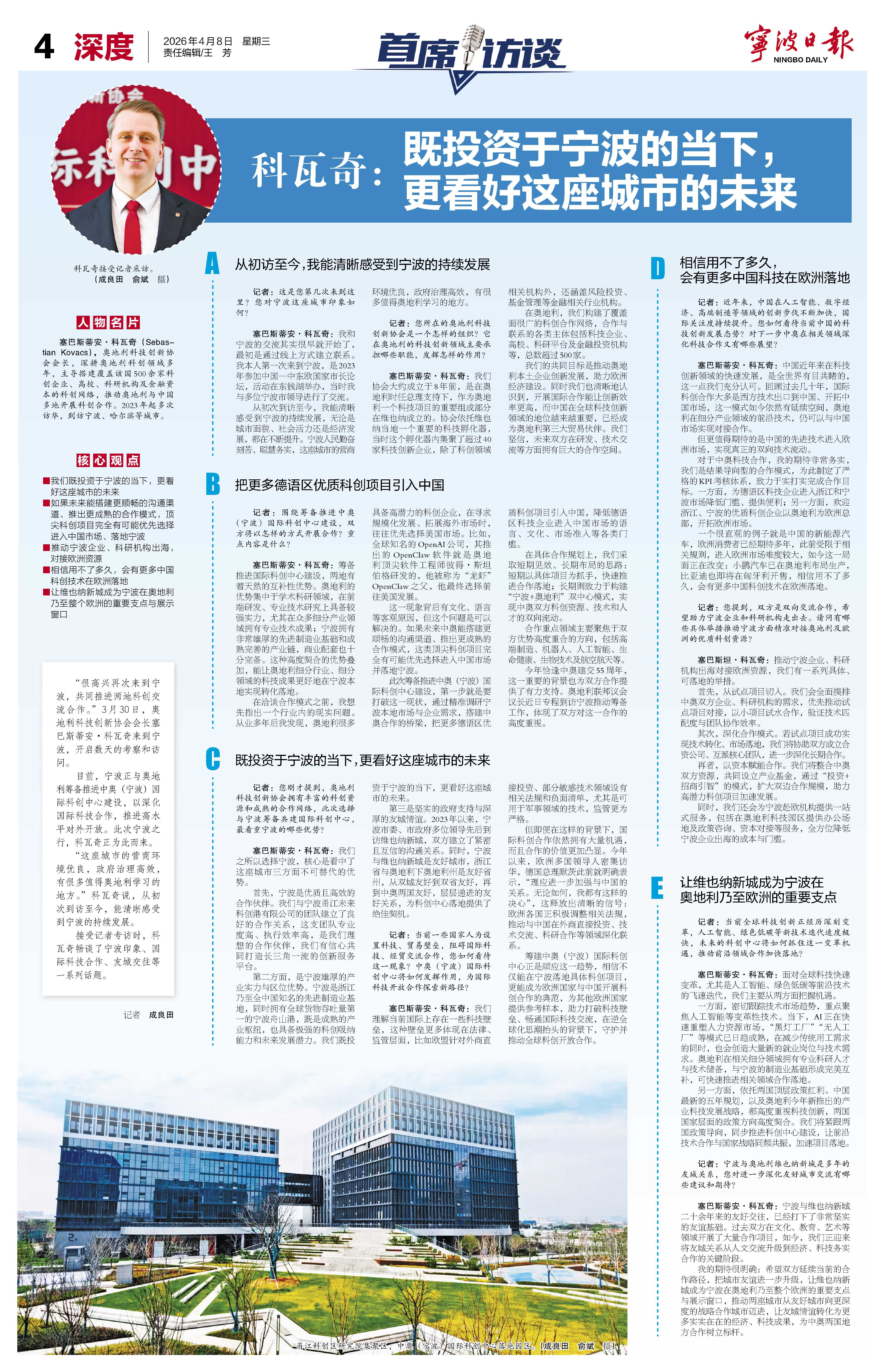 科瓦奇:既投资于宁波的当下,更看好这座城市的未来