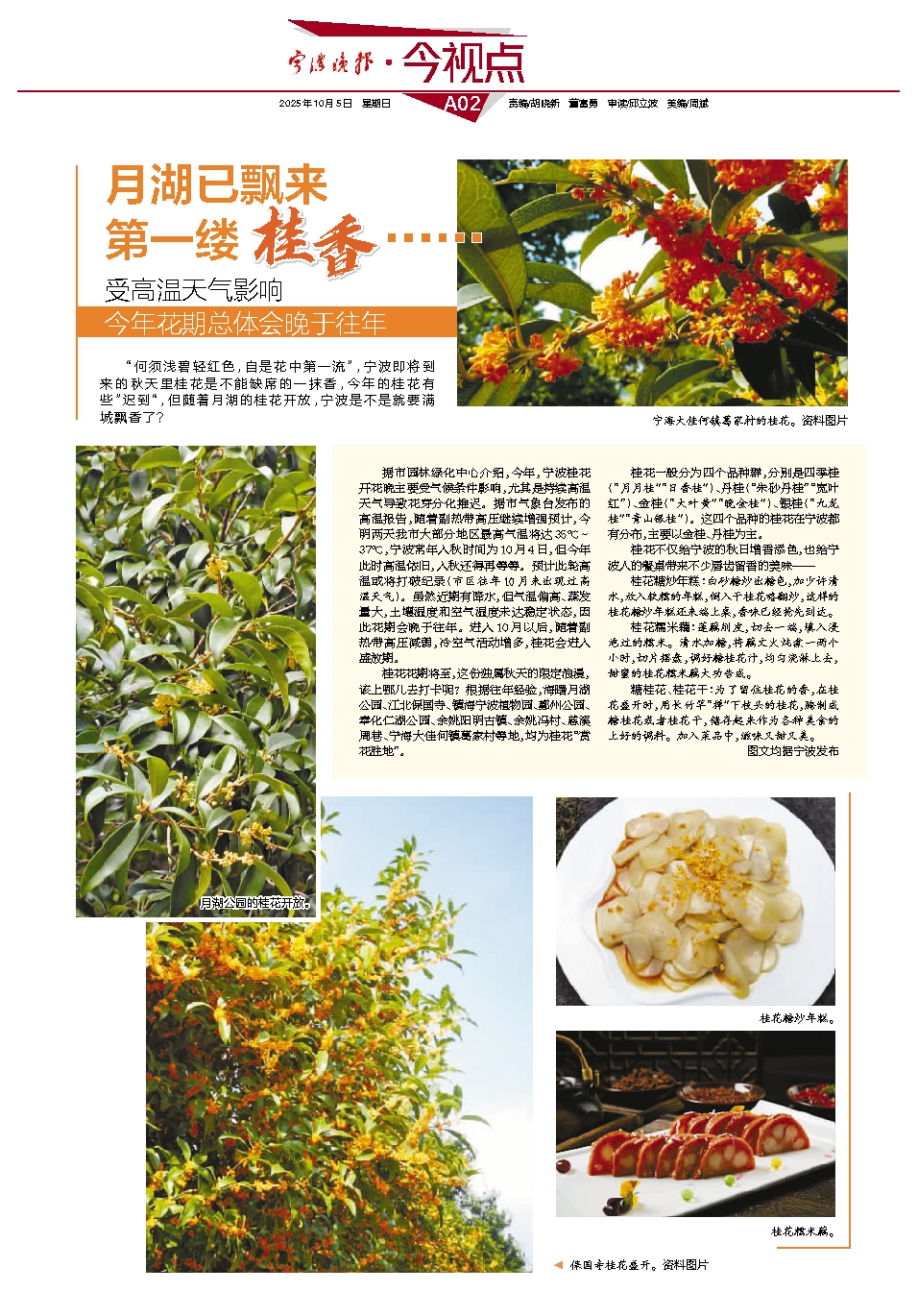 桂花不仅给宁波的秋日增香添色,也给宁波人的餐桌带来不少唇齿留香的美味——