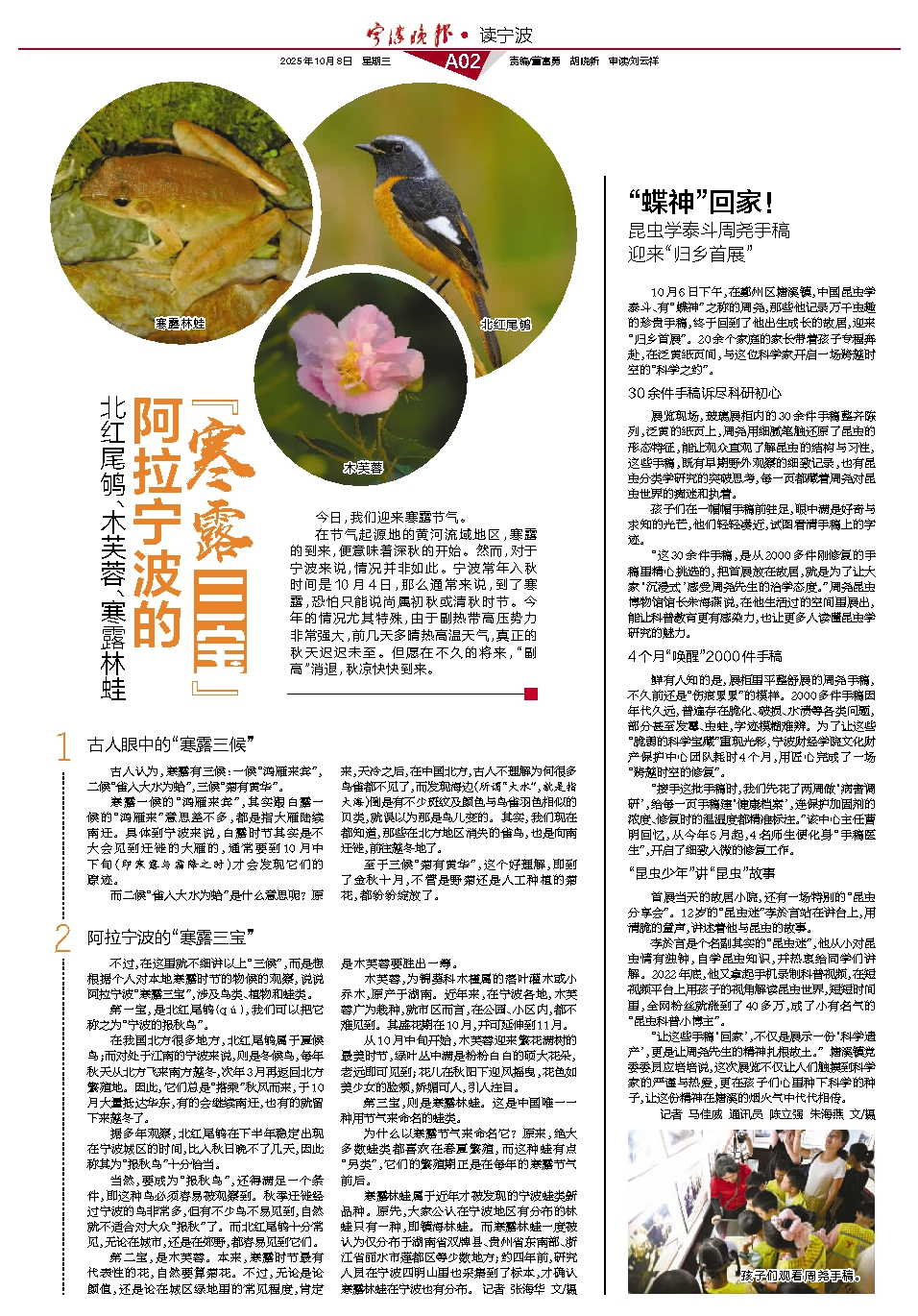 10月6日下午,在鄞州区塘溪镇,中国昆虫学泰斗、有“蝶神”之称的周尧,那些他记录万千虫趣的珍贵手稿,终于回到了他出生成长的故居,迎来“归乡首展”。20余个家庭的家长带着孩子专程奔赴,在泛黄纸页间,与这位科学家开启一场跨越时空的“科学之约”。