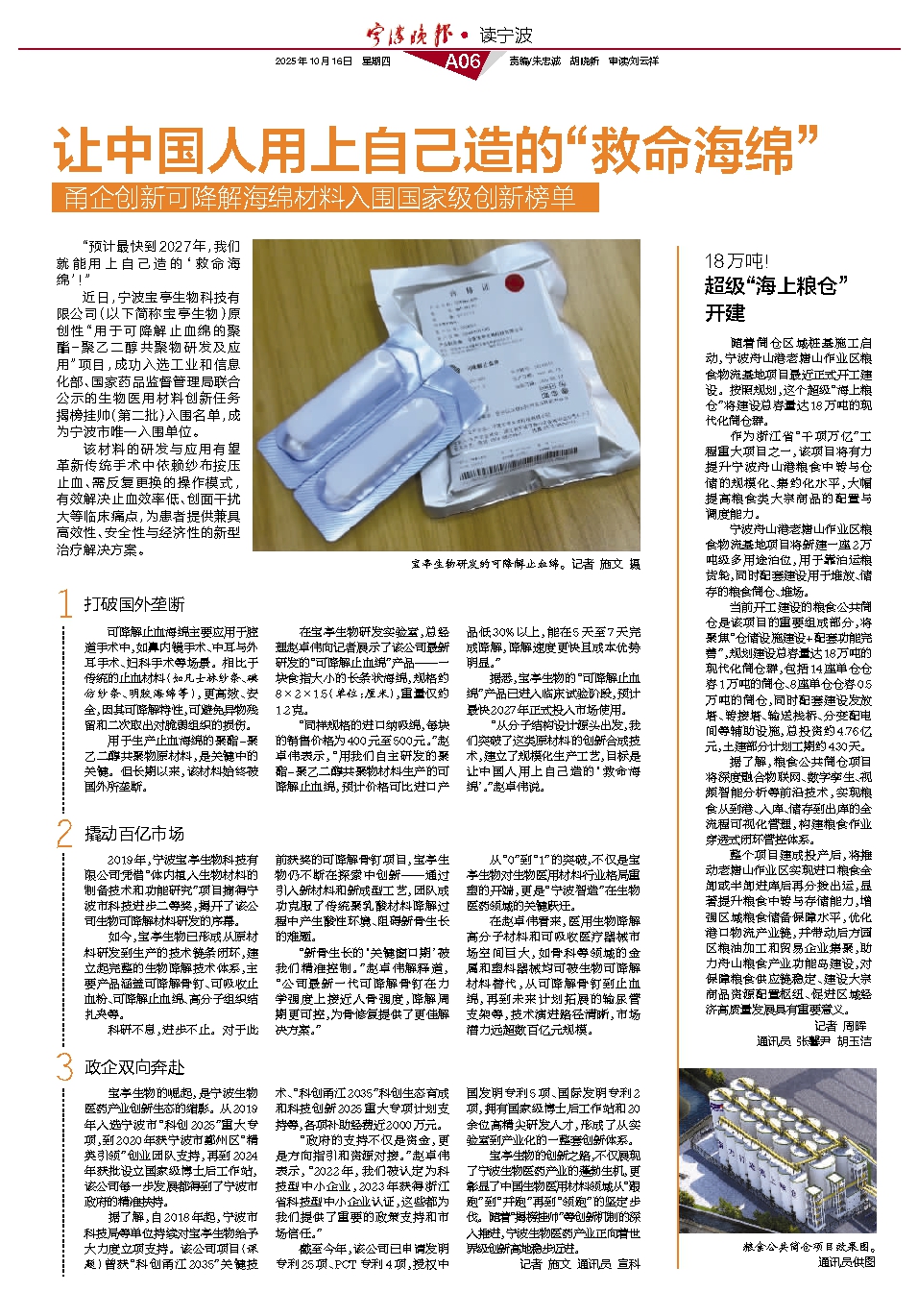 从“0”到“1”的突破,不仅是宝亭生物对生物医用材料行业格局重塑的开端,更是“宁波智造”在生物医药领域的关键跃迁。