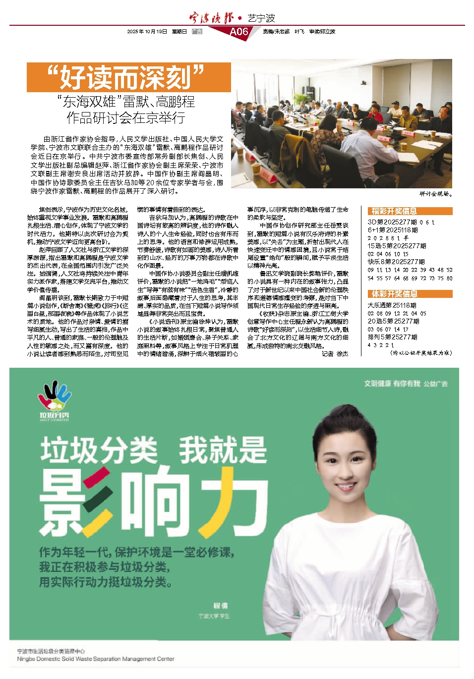 由浙江省作家协会指导,人民文学出版社、中国人民大学文学院、宁波市文联联合主办的“东海双雄”雷默、高鹏程作品研讨会近日在京举行。中共宁波市委宣传部常务副部长焦剑、人民文学出版社副总编辑赵萍、浙江省作家协会副主席荣荣、宁波市文联副主席谢安良出席活动并致辞。中国作协副主席阎晶明、中国作协诗歌委员会主任吉狄马加等20余位专家学者与会,围绕宁波作家雷默、高鹏程的作品展开了深入研讨。