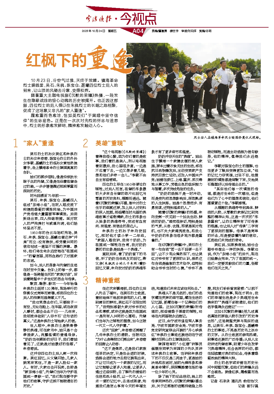 10月23日,冷空气过境,天终于放晴。镇海革命烈士陵园里,吴石、朱枫、陈宝仓、聂曦四位烈士后人的到来,让山顶的风褪去冷意,变得和煦。