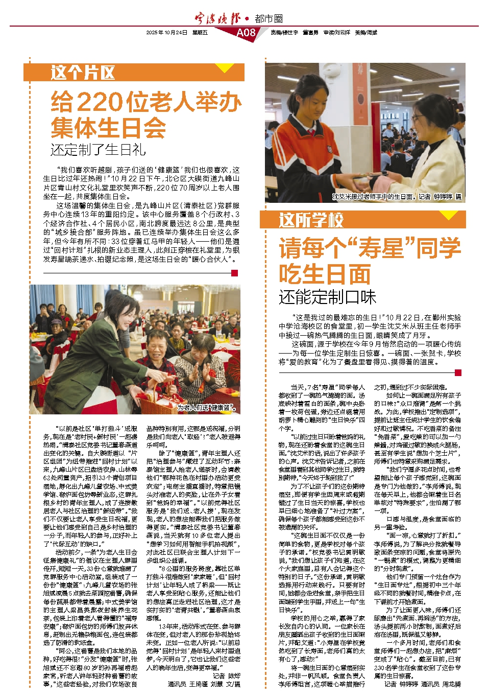 一个多月时间,老师们和食堂师傅们一起想办法,把“麻烦”变成了“贴心”。截至目前,已有230名学生在食堂收到了这份专属的生日惊喜。