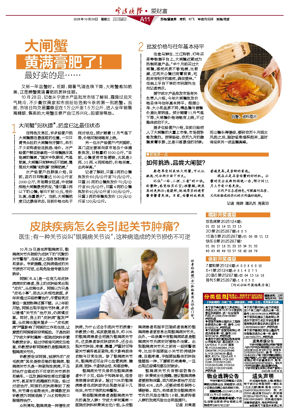 水产经营户吕振强介绍,目前,店内日均销量达1500公斤至2000公斤,市场需求旺盛,中低端规格大闸蟹最受欢迎,“像只重3两以下的公蟹,每只不到10元,性价比高,走量最大”。当前,大闸蟹肥度已达最佳状态,目前价格也处于相对低位,预计随着11月气温下降,价格可能将略有上涨。