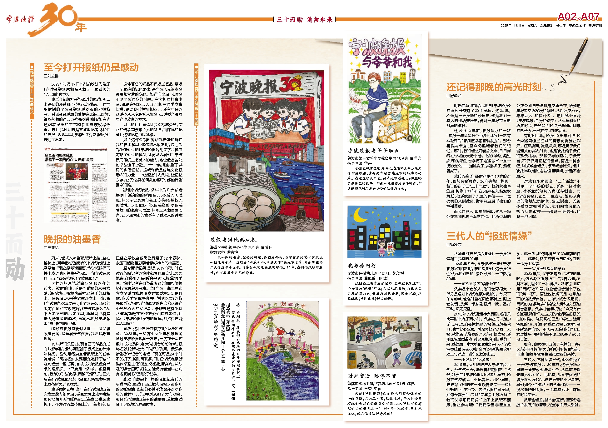 这幅画运用剪贴画技巧,呈现出夜晚城市、小女孩与“晚报”形象;又以毛笔点画,勾勒出星月及建筑灯火,童趣与创意兼具,满含祝福,在此祝愿《宁波晚报》越办越好。