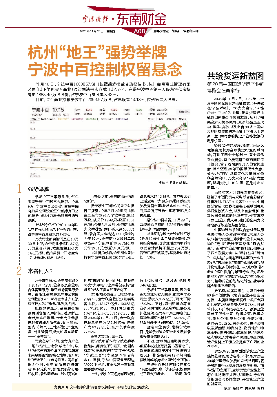 2025年11月7日,2025第二十届中国国际货运产业链博览会开幕式在宁波举行。本次大会以“+链Chain Plus”为主题,聚焦货运产业链的创新融合与协同发展,吸引了相关政府和协会领导、众多知名企业代表、媒体、高校以及来自80多个国家和地区航贸物流产业链上下游人士齐聚一堂,共同奏响货运产业链发展的激昂乐章。