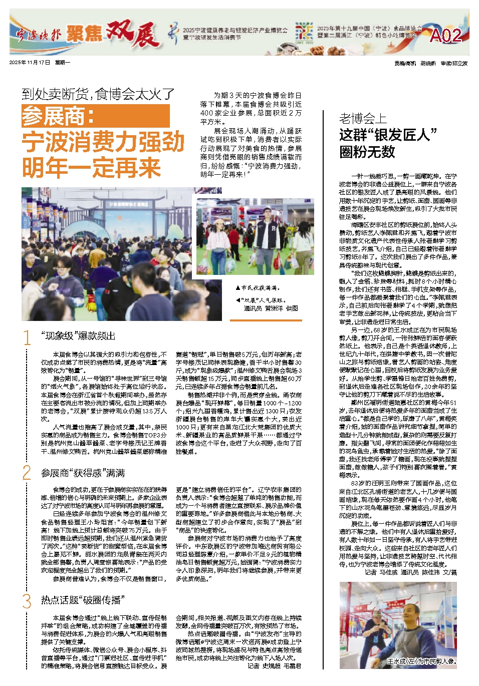 展会现场人潮涌动,从踊跃试吃到积极下单,消费者以实际行动展现了对美食的热情,参展商则凭借亮眼的销售成绩满载而归,纷纷感慨:“宁波消费力强劲,明年一定再来!”