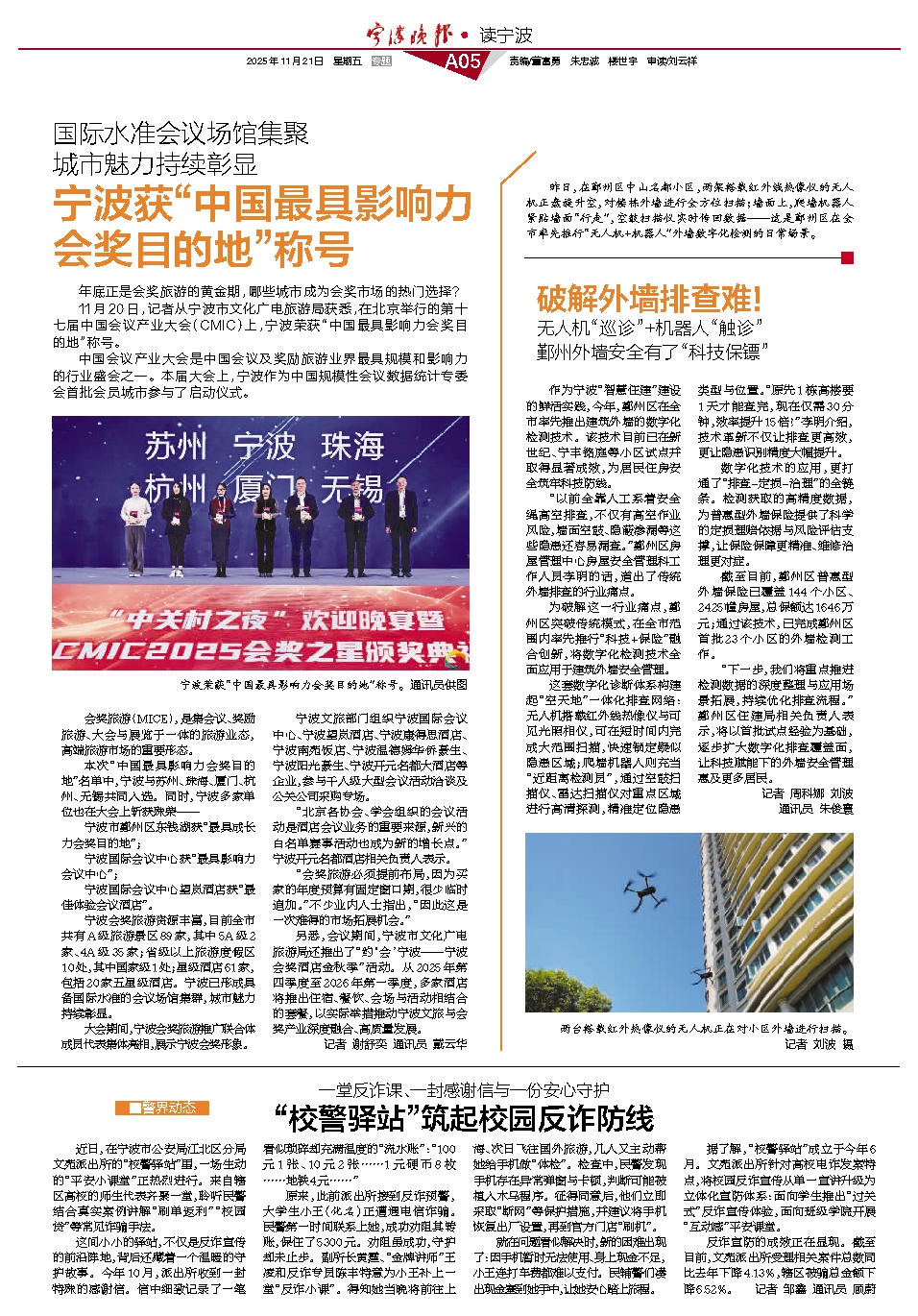 昨日,在鄞州区中山名都小区,两架搭载红外线热像仪的无人机正盘旋升空,对楼栋外墙进行全方位扫描;墙面上,爬墙机器人紧贴墙面“行走”,空鼓扫描仪实时传回数据——这是鄞州区在全市率先推行“无人机+机器人”外墙数字化检测的日常场景。