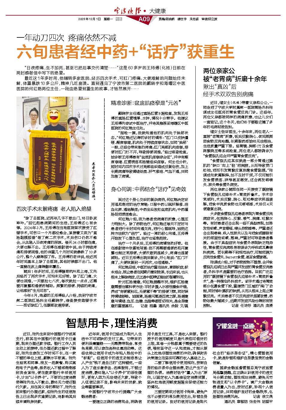 近日,储女士(化姓)带着父亲和公公,一同走进了宁波大学附属第一医院胃肠外科张谋成主任医师的胃食管反流门诊。这些年,两位父亲都被同样的病痛折磨,也让儿女们一直惦记,这个冬天,他们终于要跟这缠了多年的毛病彻底告别。