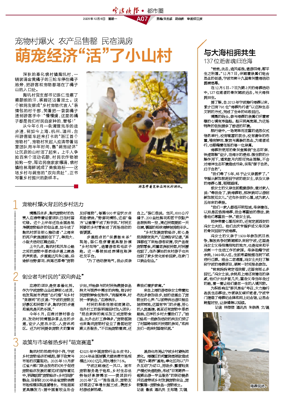 宁波正踩准这一风口。城市宠物服务趋于饱和,乡村生态优势恰好承接需求——美团旅行2025年“五一”报告显示,宠物友好酒店订单增长超三成,携宠乡村游成新热潮。