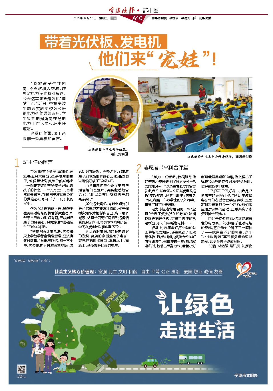 “我们班有个孩子,草稿本、画纸甚至积木模型,全是电塔的影子,他说想让所有房子都亮起来……想邀请你们来给孩子讲课,圆孩子的梦想……”11月22日,肖琳莹犹豫再三,在国网宁波供电公司的微信公众号写下了一段长长的文字。