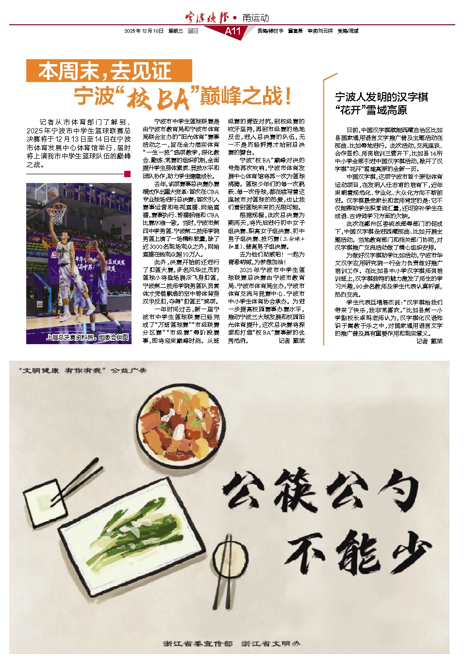 中国汉字棋,这项宁波市首个原创体育运动项目,在发明人任志甫的培育下,近年来朝着规范化、专业化、大众化方向不断前进。汉字棋最受家长和老师肯定的是:它不仅能帮助学生积累词汇量,还可弥补学生在成语、古诗词学习方面的欠缺。