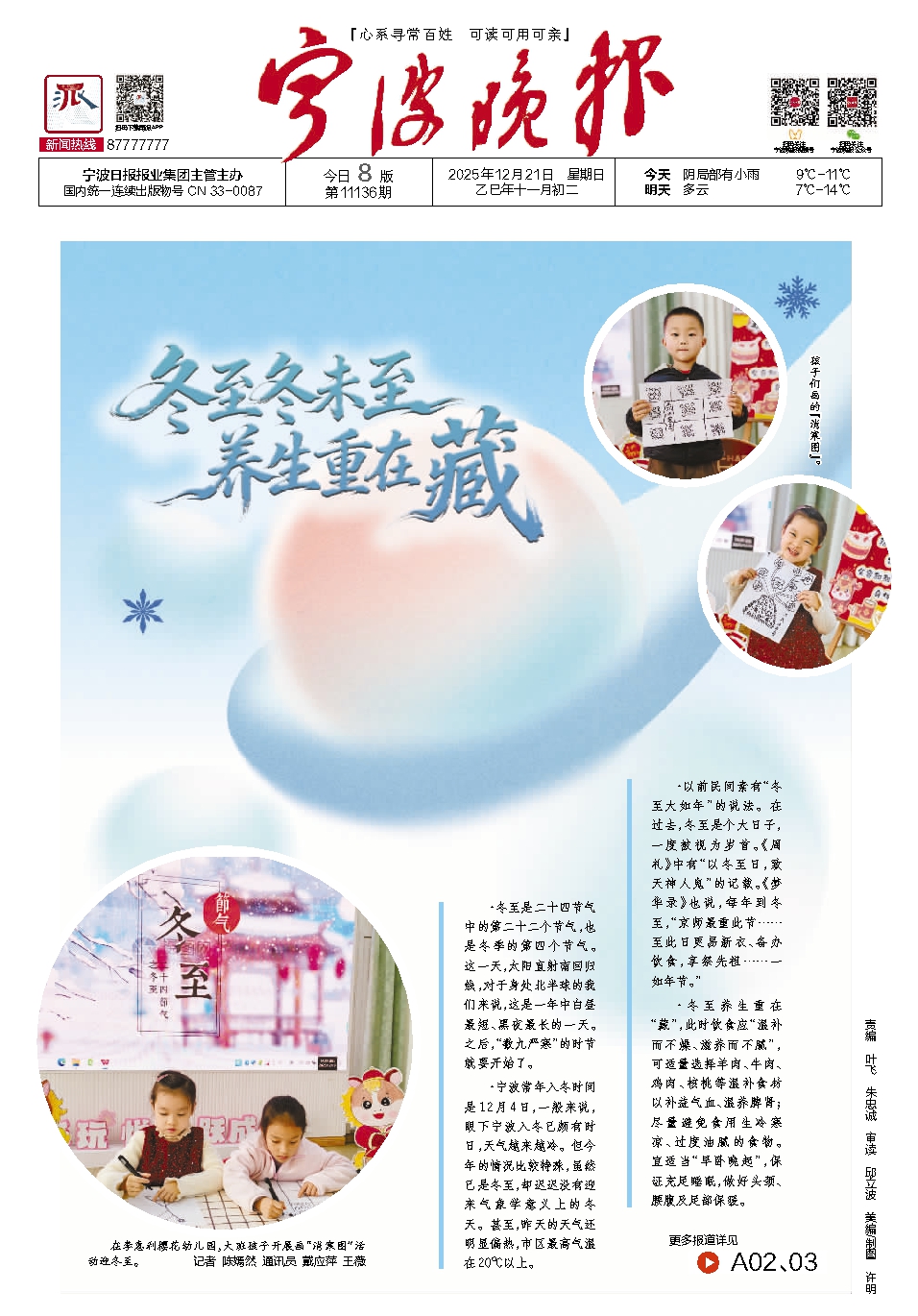 ·宁波常年入冬时间是12月4日,一般来说,眼下宁波入冬已颇有时日,天气越来越冷。但今年的情况比较特殊,虽然已是冬至,却迟迟没有迎来气象学意义上的冬天。甚至,昨天的天气还明显偏热,市区最高气温在20℃以上。