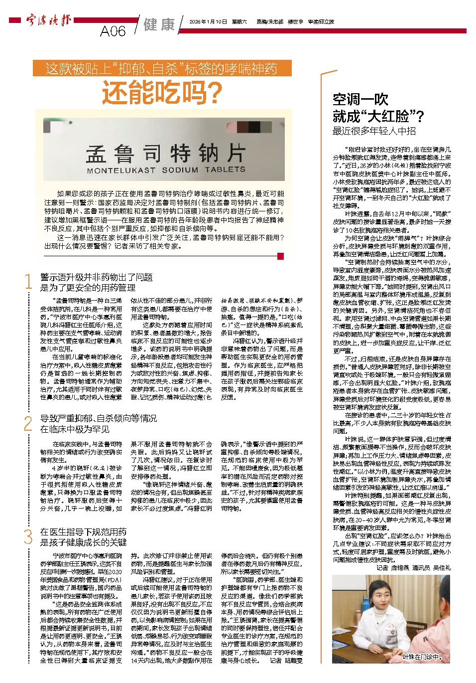 “这是药品安全监测体系成熟的表现,所有药物在广泛使用后都会持续收集安全性数据,并根据最新证据更新说明书,目前是让用药更透明、更安全。”王瑛认为,从药物本身来看,孟鲁司特钠在规范使用下,其疗效和安全性已得到大量临床证据支持。此次修订并非禁止使用该药物,而是提醒医生与家长加强风险识别和管理。
