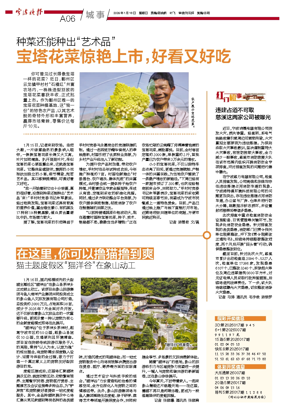 小小的宝塔花菜,不仅以独特形态点亮了田间,更通过党建赋能、产销一体的共富实践,为当地农户铺就了一条稳产增收的新路径。“下周已经有一家超市预订了200颗,也欢迎经销商前来合作,共同助力。”甲村村党委书记朱军豪表示,宝塔花菜的采收期可持续至春节后,有望成为宁波市民餐桌上一道特色美食。目前,产品已通过线上推广与线下直销打开市场,近期将进驻共建单位的商超,方便市民就近购买。