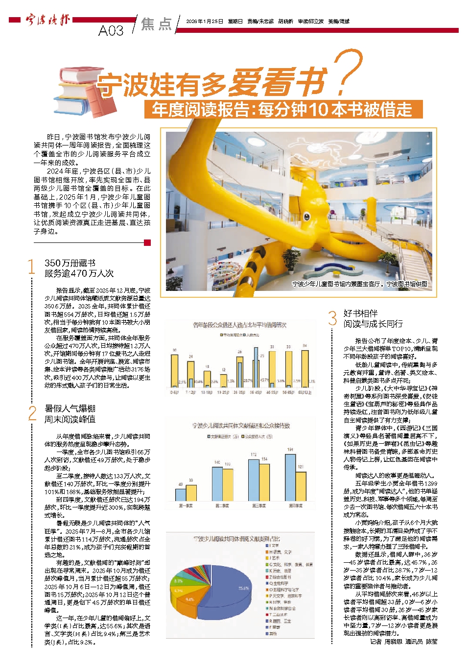 昨日,宁波图书馆发布宁波少儿阅读共同体一周年阅读报告,全面梳理这个覆盖全市的少儿阅读服务平台成立一年来的成效。