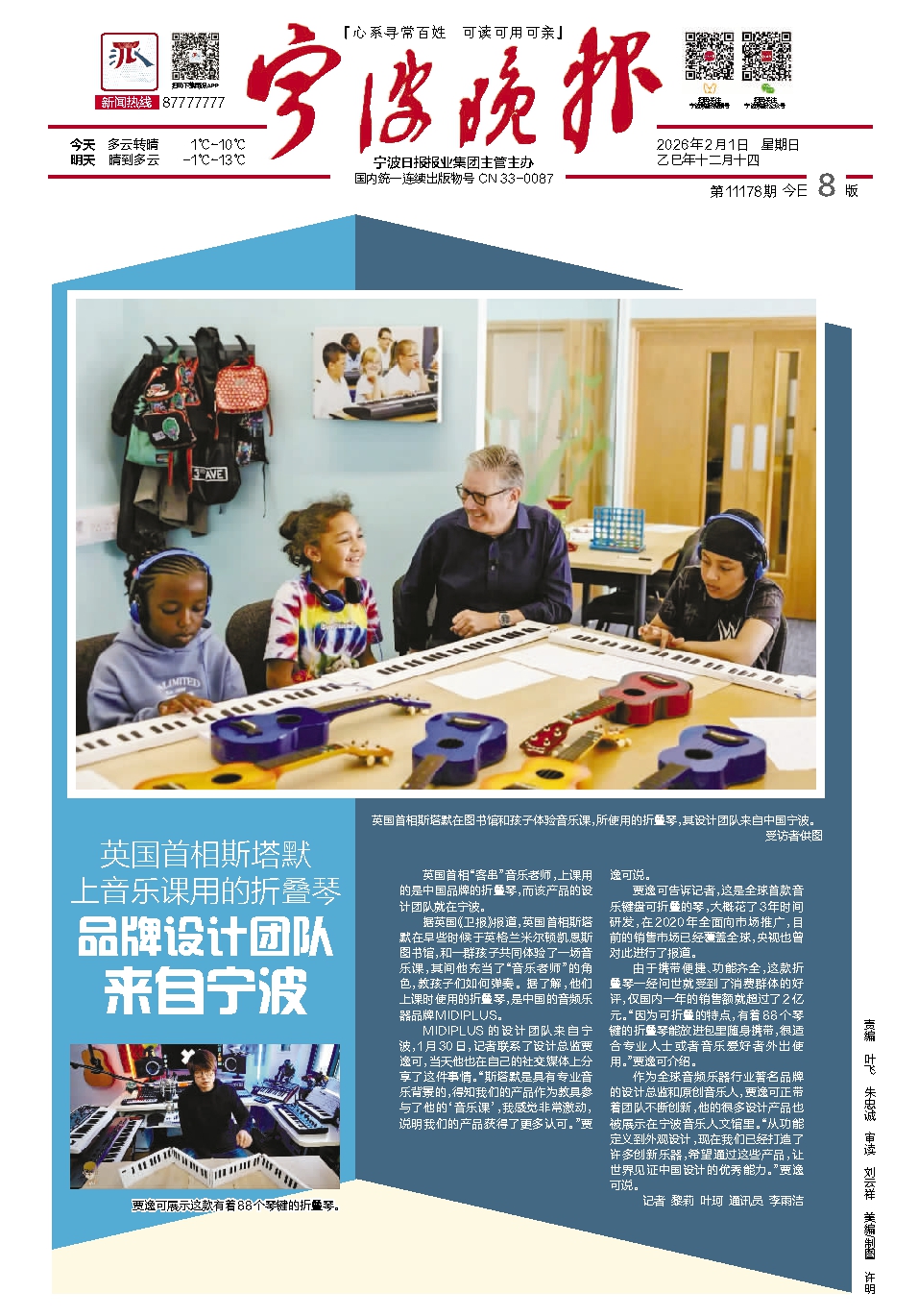 英国首相“客串”音乐老师,上课用的是中国品牌的折叠琴,而该产品的设计团队就在宁波。