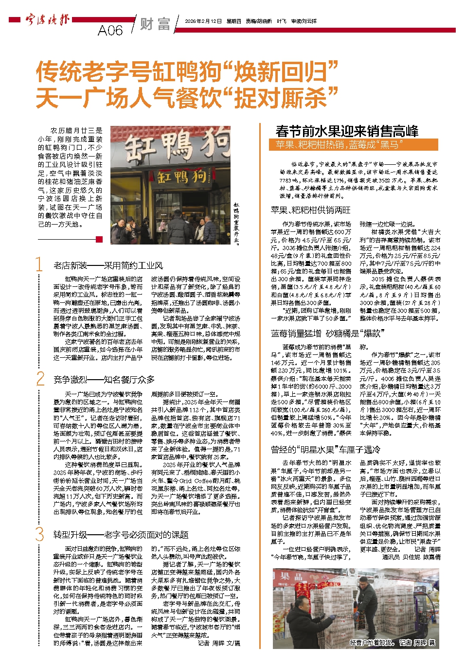 老字号与新品牌在此交汇,传统风味与创新设计在此碰撞,共同构成了天一广场独特的餐饮图景。随着春节临近,宁波城市客厅的“烟火气”正变得越来越浓。