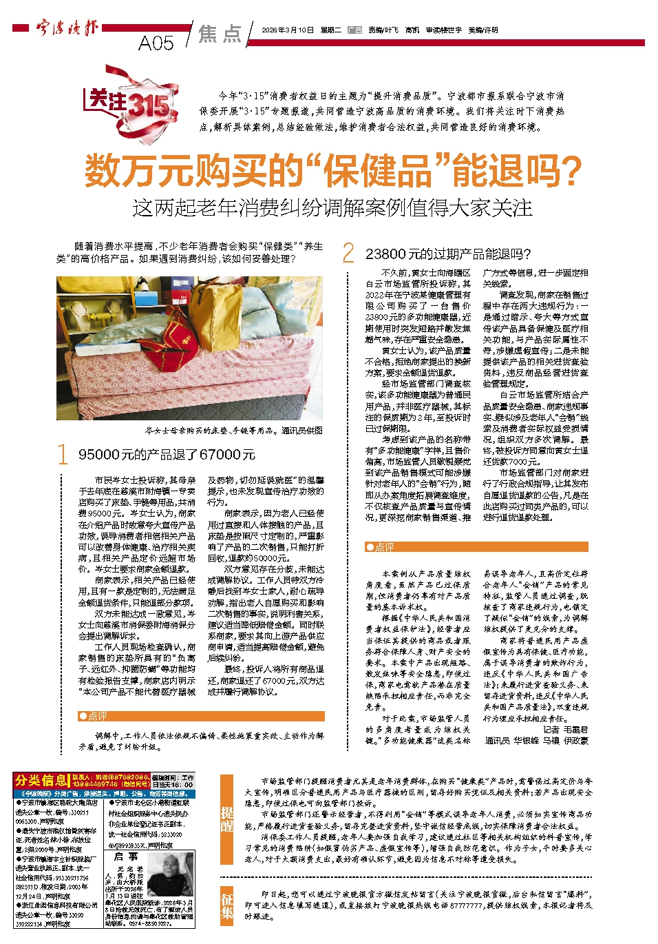 即日起,您可以通过宁波晚报官方微信发帖留言(关注宁波晚报官微,后台私信留言“爆料”,即可进入信息填写通道),或直接拨打宁波晚报热线电话87777777,提供维权线索,本报记者将及时跟进。